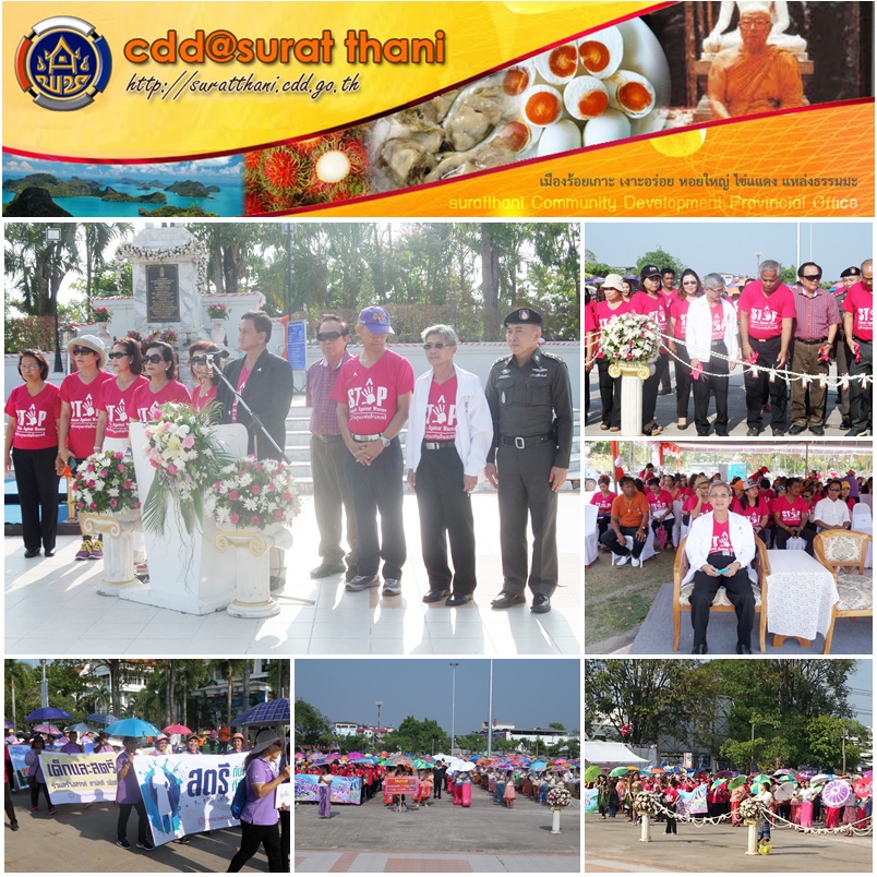 วันนี้ 31 มี.ค. 2559 คณะกรรมการพัฒนาสตรีจังหวัดสุราษฎร์ธานี ร่วมกับองค์การบริหารส่วนจังหวัดสุราษฎร์ธานี สำนักงานสวัสดิการและคุ้มครองแรงงานจังหวัดสุราษฎร์ธานี สำนักงานพัฒนาสังคมและความมั่นคงของของมนุษย์จังหวัดสุราษฎร์ธานี สำนักงานพัฒนาชุมชนจังหวัดสุราษฎร์ธานี กองทุนพัฒนาบทบาทสตรีจังหวัดสุราษฎร์ธานีและชมรมสตรีทั้ง 19 อำเภอของจังหวัดสุราษฎร์ธานี จัดงานวันสตรีสากล ประจำปี 2559 แสดงพลัง ส่งเสริมบทบาทและสถานภาพของสตรีจังหวัดสุราษฎร์ธานี ภายใต้แนวคิด “รวมพลังสตรี สร้างสรรค์เมืองคนดี วันสตรีสากล ปี 2559” โดยนายวงศศิริ พรหมชนะ ผู้ว่าราชการจังหวัดสุราษฎร์ธานี เป็นประธานในพิธีเปิดงานวันสตรีสากล ประจำปี 2559 และปล่อยขบวนเดินรณรงค์ยุติความรุนแรงต่อเด็กและสตรี ณ สนามหน้าศาลากลางจังหวัดสุราษฎร์ธานี และในเวลา 19.00 น. พิธีเปิดงานวันสตรีสากลจังหวัดสุราษฎร์ธานี โดยนายอภิสิทธิ์ เวชชาชีวะ เป็นประธานเปิดงาน ทั้งนี้กิจกรรมภายในงานภาคค่ำประกอบไปด้วย ทอล์คโชว์ การมอบประกาศเกียรติคุณสตรีดีเด่น กิจกรรมคืนความสุขให้สตรีเมืองคนดี การแสดงดนตรีและรำวงย้อนยุค การจัดแสดงและจำหน่ายสินค้า OTOP และผลิตภัณฑ์จากหมู่บ้านเศรษฐกิจพอเพียง ณ บริเวณสนามข้างโรงแรมวังใต้ อำเภอเมืองสุราษฎร์ธานี โดยมีผู้เข้าร่วมงานกว่า 12,500 คน