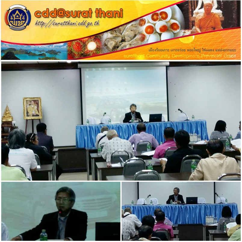 วันนี้ 4 พ.ค.59 เวลา 13.00 น. นายอรชุน ธิวรรณลักษณ์ พัฒนาการจังหวัดสุราษฎร์ธานี บรรยายพิเศษในเรื่อง การพัฒนาเศรษฐกิจฐานรากและประชารัฐ ณ ศูนย์ส่งเสริมอุตสาหกรรมภาค10