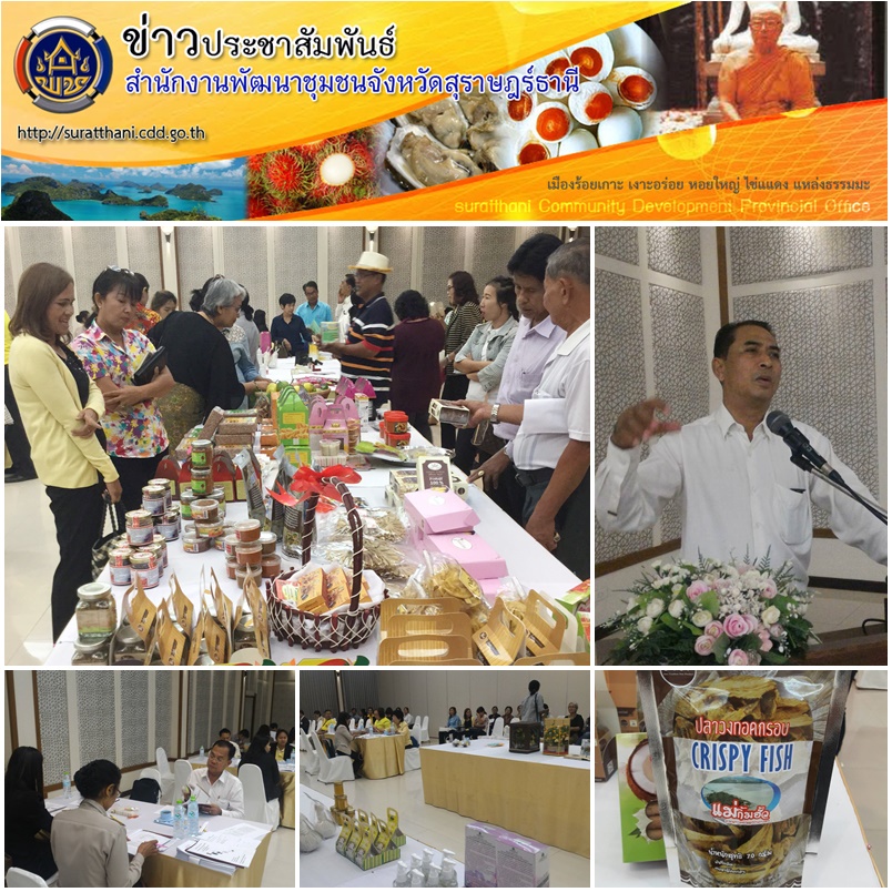วันที่ 12 กันยายน 2559 สำนักงานพัฒนาชุมชนจังหวัดสุราษฎร์ธานี จัดโครงการคัดสรรสุดยอดหนึ่งตำบล หนึ่งผลิตภัณฑ์ไทย ปี 2559 (รอบ 2) และชี้แจงแนวทางนโยบาย หลักเกณฑ์การคัดสรรฯ ณ โรงแรมนิภาการ์เด้น อำเภอเมืองสุราษฎร์ธานี
