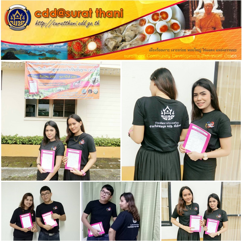 ทีมงานพัฒนาชุมชนจังหวัดสุราษฎร์ธานี เครือข่ายองค์กรพัฒนาชุมชน ร่วมรณรงค์ประชาสัมพันธ์การจัดเก็บข้อมูล จปฐ. ประจำปี 2560 ณ ที่ว่าการอำเภอทุกอำเภอ