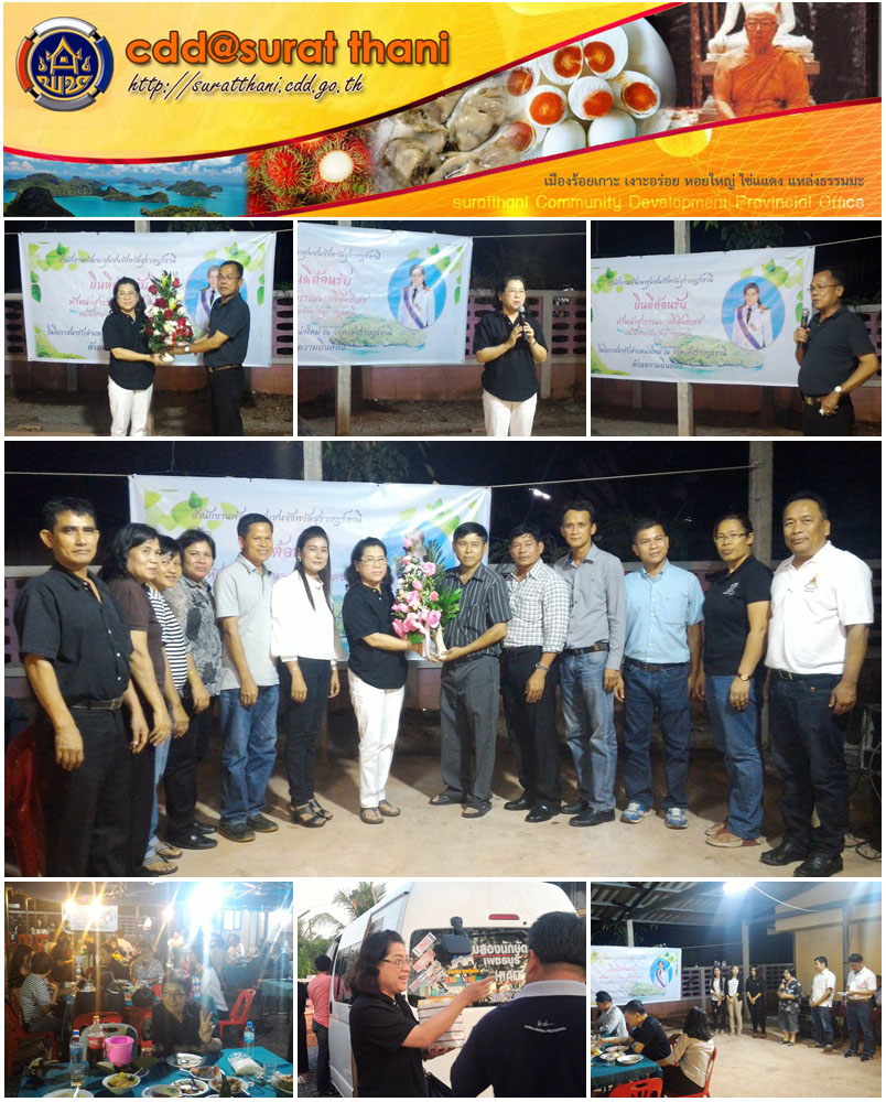 เมื่อวันที่ 29 มค. 60 เวลา 18.20 น. นายเธียรชัย ลิ่มกุล หัวหน้ากลุ่มงานยุทธศาสตร์ พร้อมด้วยหัวหน้ากลุ่มงาน/ฝ่าย และเจ้าหน้าที่พัฒนาชุมชนจังหวัดสุราษฎร์ธานี พร้อมให้การต้อนรับและแสดงความยินดีกับนางสาวสุวรรณา ตรีสิทธิเดช พัฒนาการจังหวัดสุราษฎร์ธานี และคณะฯ เนื่องในโอกาสมารับตำแหน่งใหม่ ณ บ้านพักพัฒนาการจังหวัดสุราษำร์ธานี