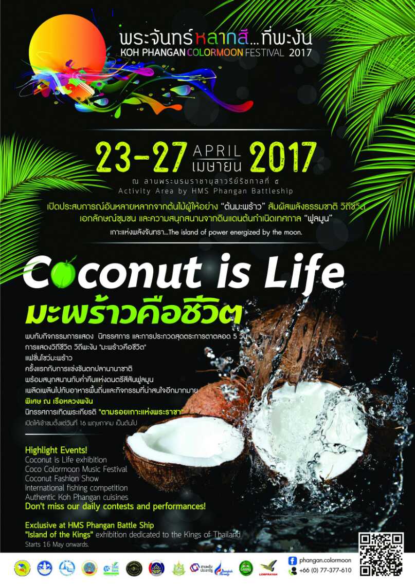 เปิดประสบการณ์อันหลากหลายจากต้นไม้ผู้ให้อย่าง “ต้นมะพร้าว” สัมผัสพลังธรรมชาติ วิถีชีวิต เอกลักษณ์ชุมชน และความสนุกสนานจากดินแดนต้นกำเนิดเทศกาล “ฟลูมูล” ระหว่างวันที่ 23-27 เมษายน 2560 ณ เกาะพะงัน จังหวัดสุราษฎร์ธานี