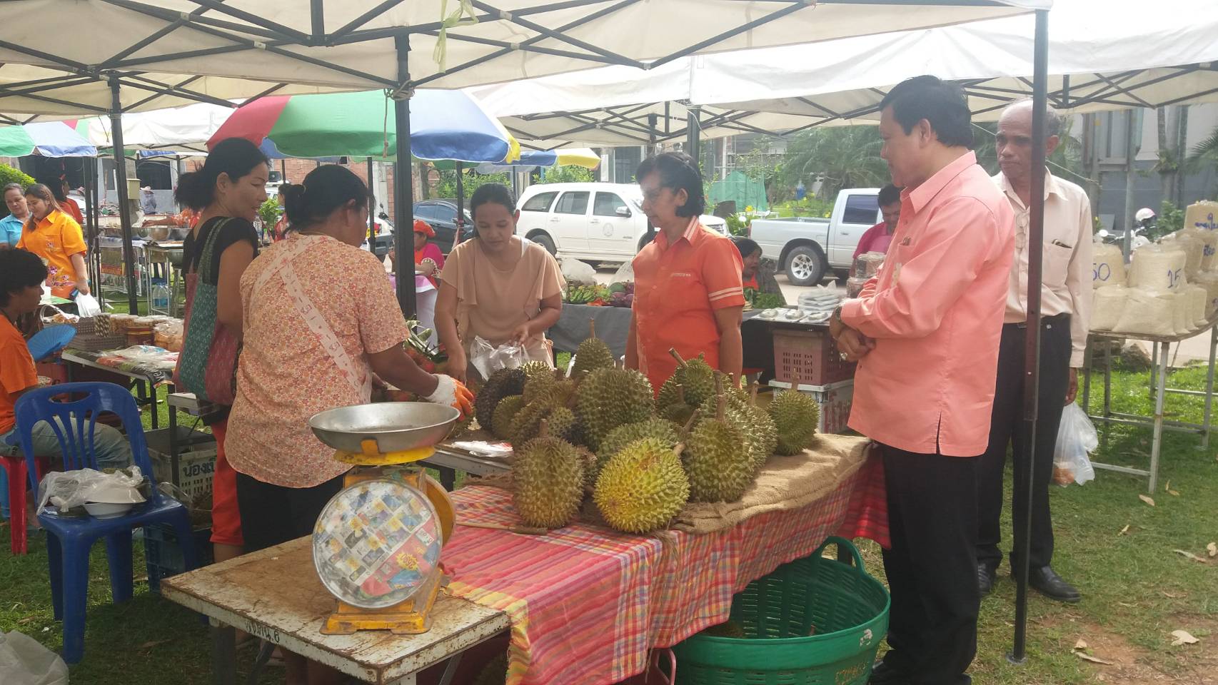 นายวาทกานต์ ช่อแก้ว พัฒนาการจังหวัดสุราษฎร์ธานี เยี่ยมตลาดประชารัฐคนไทยยิ้มได้ ซึ่งย้ายสถานที่จากหน้าศาลากลาง ไปที่หน้าอาคาร อบจ. มีสินค้าดีมีคุณภาพไว้จำหน่าย ตามไปช่วยอุดหนุนกันได้