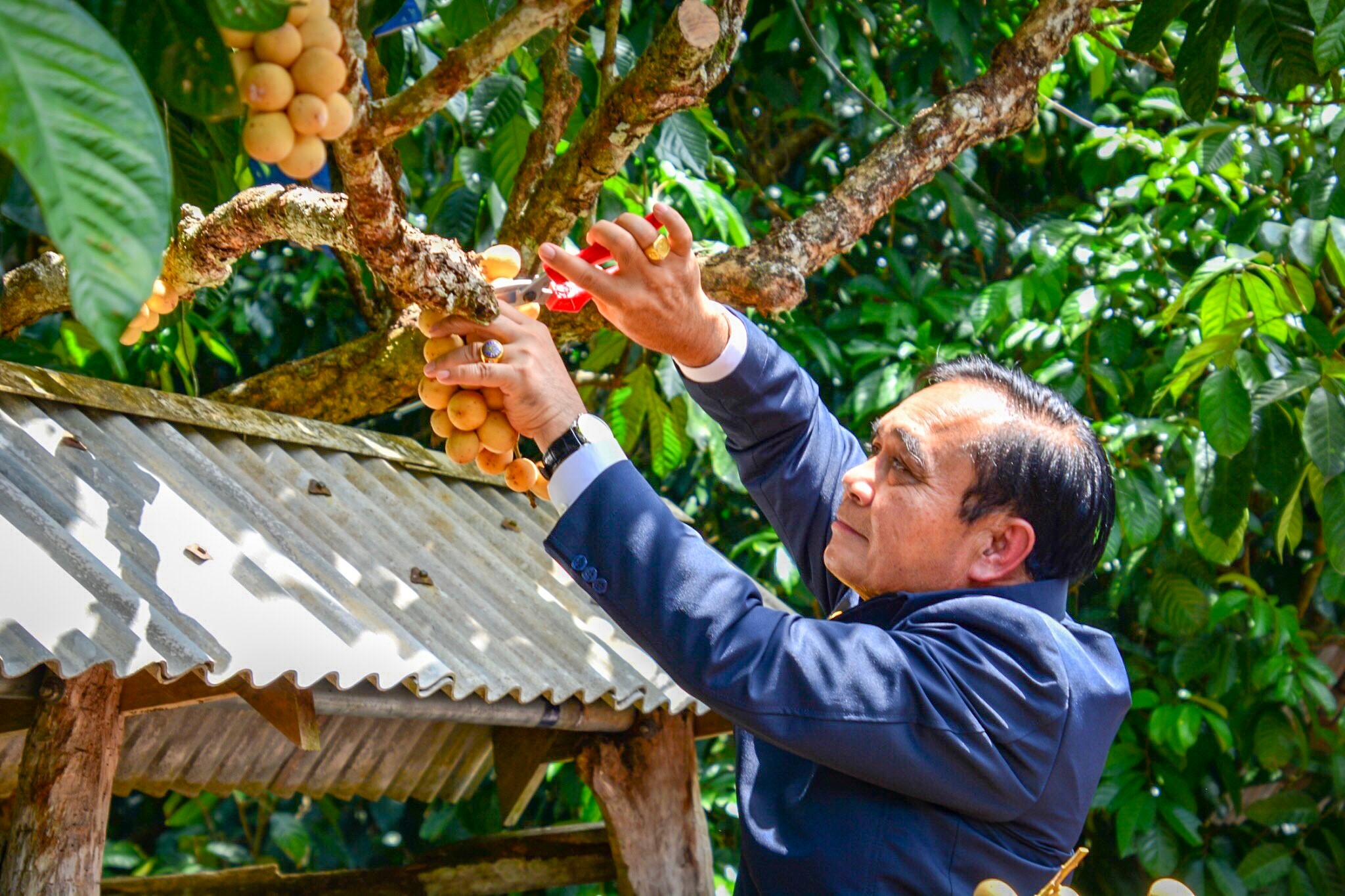 ?ท่านนายกรัฐมนตรี ได้ทำการตัดช่อลางสาดหอม พันธุ์ลิปะใหญ่ซึ่งเป็นผลไม้ประจำถิ่น ณ บ้านนายประวิช พรหมรักษ์ และเดินทางไปพบปะประชาชนที่มาต้อนรับตรงบริเวณน้ำตกหินลาด โดยประธานองค์กรสตรีเกาะสมุย นางพิมพ์พร ทองสุข เป็นผู้กล่าวต้อนรับและฟังบรรยายสรุปชุมชนท่องเที่ยว OTOP นวัตวิถีบ้านหินลาด จากประธานชุมชนท่องเที่ยว OTOP นวัตวิถีบ้านหินลาด นายเศวต วิชัยดิษฐ์ และได้เยี่ยมชมบูธผลไม้ประจำถิ่น อาหารพื้นเมืองและการกินห่อ ผลิตภัณฑ์ OTOP ที่พัฒนาขึ้นใหม่โดยมหาวิทยาลัยศิลปากร ร่วมกวนกาละแมสมุย และเยี่ยมชมบูธของดีและสินค้า OTOP ของอำเภอเกาะสมุย