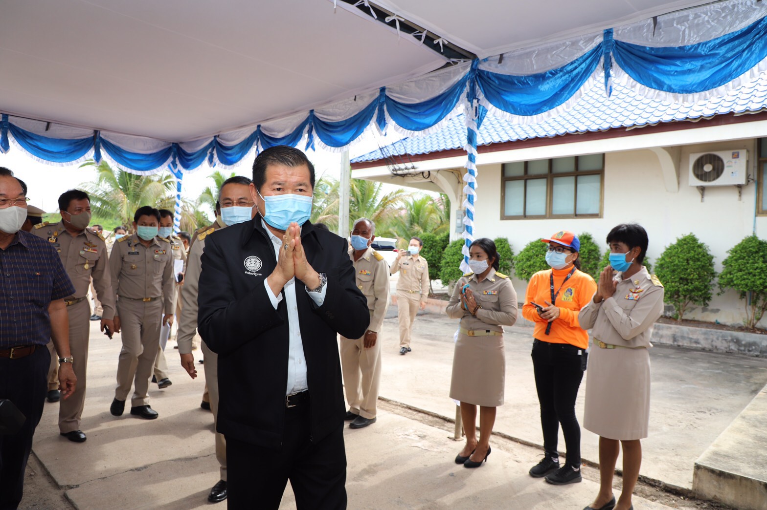 โดยนายวิชวุทย์ จินโต ผู้ว่าราชการจังหวัดสุราษฎร์ธานี กล่าวต้อนรับและบรรยายสรุปสถานการณ์ภัยแล้งและสถานการณ์การแพร่ระบาดโรคไวรัสโคโรน่า 2019 (COVID – 19) ของจังหวัดสุราษฎร์ธานี