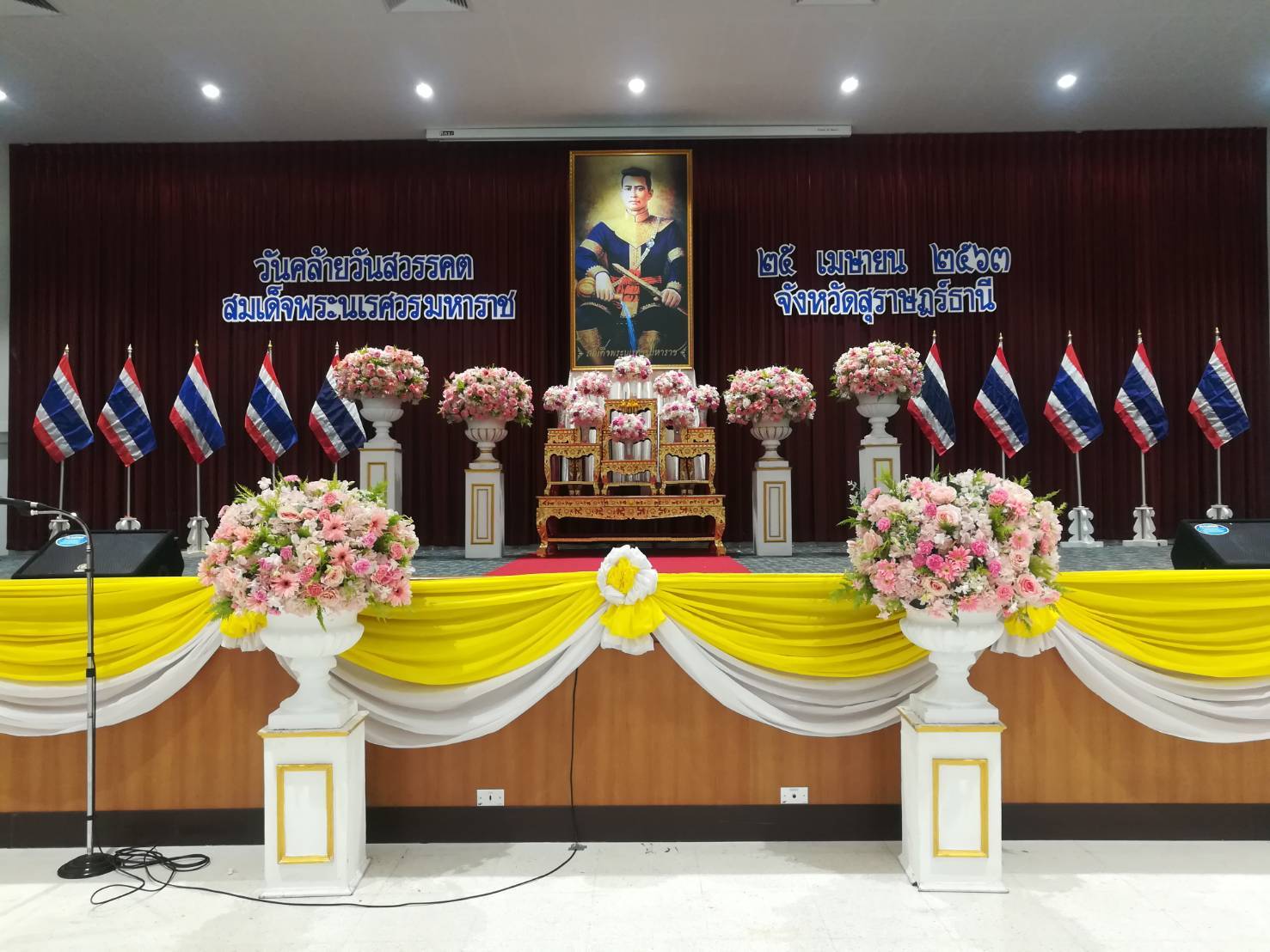 วันที่ 25 เมษายน 2563 เวลา 09.00 น นายวิชวุทย์ จินโต ผู้ว่าราชการจังหวัดสุราษฎร์ธานี เป็นประธานพิธีถวายราชสักการะวันคล้ายวันสวรรคตสมเด็จพระนเรศวรมหาราช โดยมีนายนพรัตน์ ธำรงทรัพย์ พัฒนาการจังหวัดสุราษฎร์ธานี และเจ้าหน้าที่ พช.จังหวัดสุราษฎร์ธานี ร่วมกิจกรรม ณ ศูนย์กลางการประชุมสัมมนาภาคใต้ตอนบน ศาลากลางจังหวัดสุราษฎร์ธานี