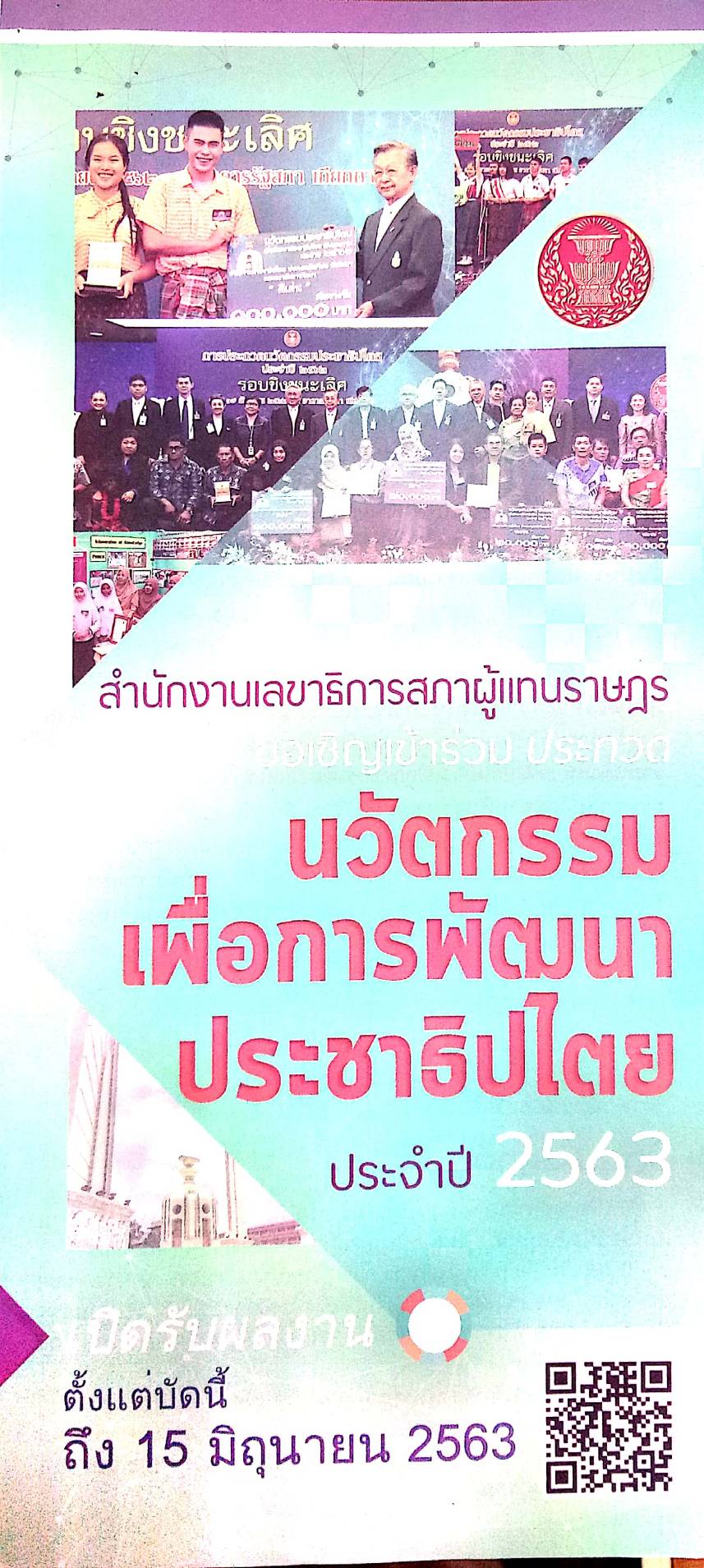 ขอเชิญเข้าร่วมประกวด นวัตกรรมเพื่อการพัฒนาประชาธิปไตย 18 พฤษภาคม 63 / 14.57 น. เปิดรับผลงาน ตั้งแต่บัดนี้ ถึง 15 มิถุนายน 2563 (Visited 1 times, 1 visits today)Facebook iconFacebookTwitter iconTwitterLINE iconLine