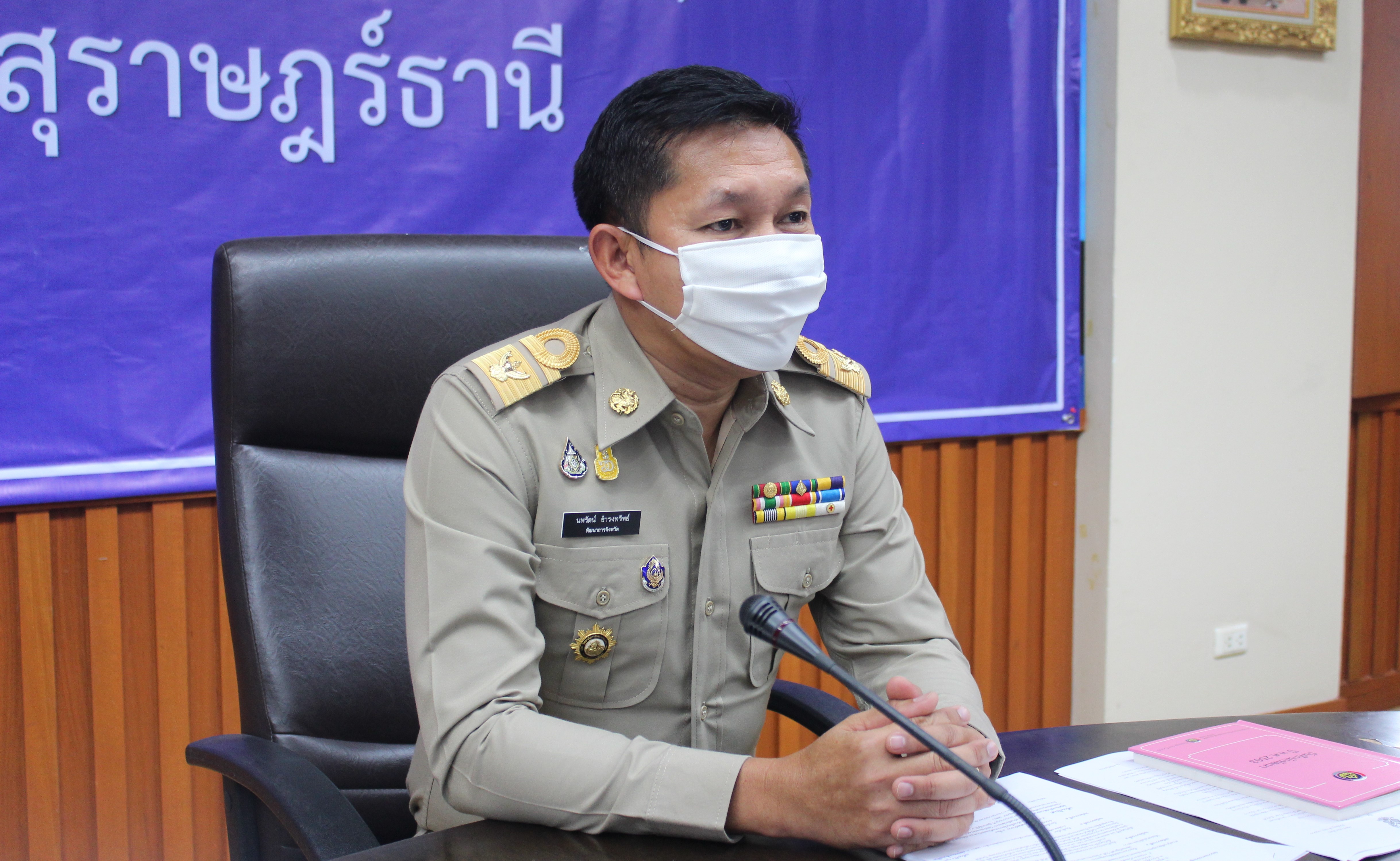 นายนพรัตน์ ธำรงทรัพย์ พัฒนาการจังหวัดสุราษฎร์ธานี พร้อมด้วย หัวหน้ากลุ่มฯ/ฝ่าย พัฒนาการอำเภอและนักวิชาการพัฒนาชุมชน สำนักงานพัฒนาชุมชนจังหวัดฯ เข้าร่วมประชุม ณ ห้องประชุมตาปี ศาลากลางจังหวัด ชั้น 4 เพื่อรับทราบข้อสั่งการ และแนวทางการขับเคลื่อนงานนโยบายตามภารกิจกรมการพัฒนาชุมชน ให้บรรลุเป้าหมายสอดคล้องกับวิสัยทัศน์กรมการพัฒนาชุมชน :เศรษฐกิจฐานรากมั่นคง และชุมชนพึ่งตนเองได้ภายในปี 2565