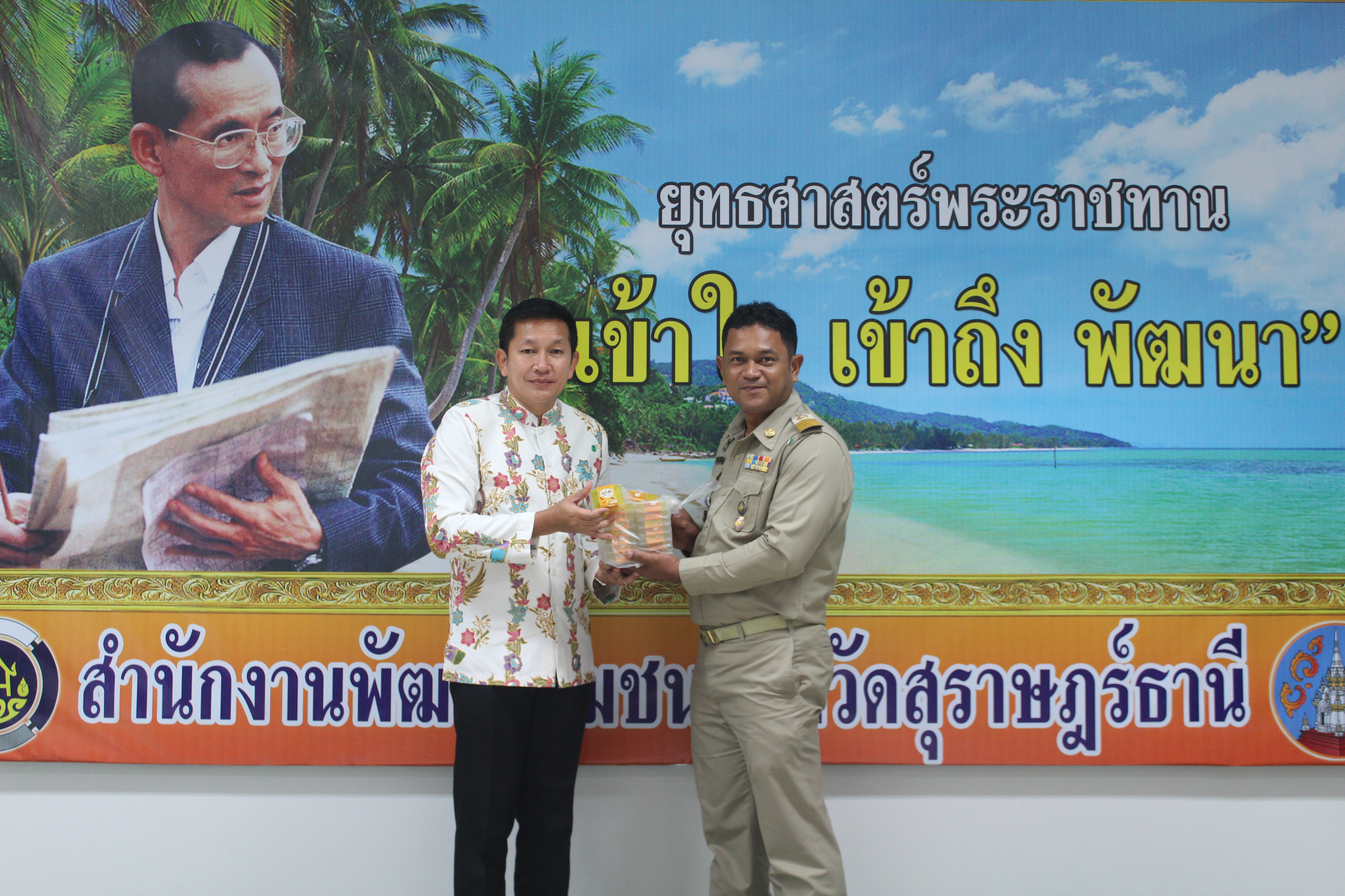 วันที่ 7 ตุลาคม 2563 เวลา 09.00 น. สำนักงานพัฒนาชุมชนจังหวัดสุราษฎร์ธานี โดยนายนพรัตน์ ธำรงทรัพย์ พัฒนาการจังหวัดสุราษฎร์ธานี ขอขอบคุณนายกิตติศักดิ์ นาคกุล (ผู้ใหญ่โต) ในโอกาสที่ส่งมอบผลิตภัณฑ์สบู่น้ำผึ้งบ้านห้วยทรายให้ทดลองใช้ ซึ่งเป็นผลิตภัณฑ์ OTOP ตัวใหม่ ที่กลุ่มแปรรูปผลิตภัณฑ์สบู่น้ำบ้านห้วยทราย ผลิตขึ้นใหม่ ภายใต้หลักคิดและวิสัยทัศน์ “หมู่บ้านห้วยทราย มีความมั่นคง มั่งคั่ง ยั่งยืน เป็นหมู่บ้านที่พัฒนาแล้ว ด้วยการพัฒนาตามหลักปรัชญาของเศรษฐกิจพอเพียง”