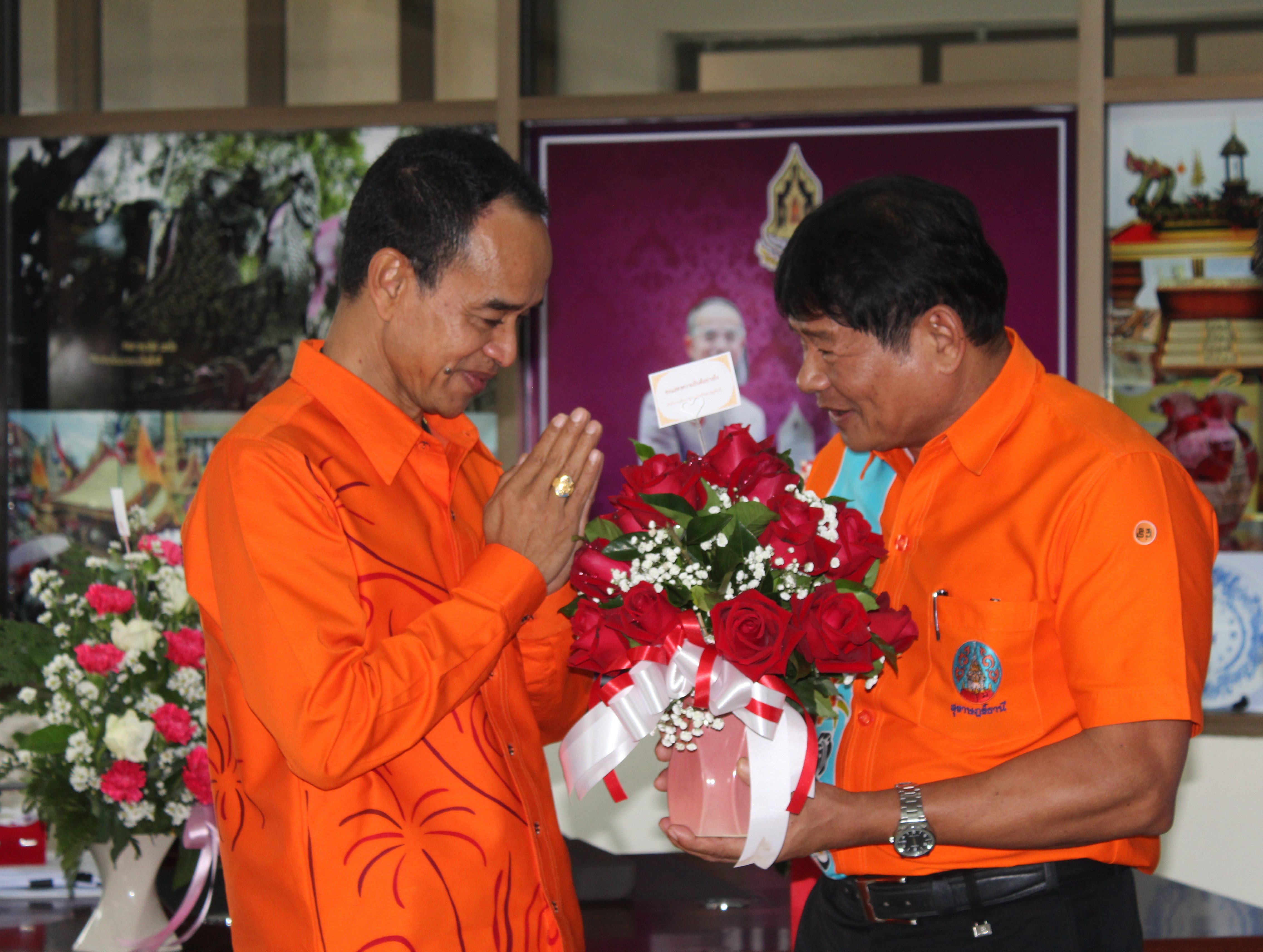 พัฒนาชุมชนจังหวัดสุราษฎร์ธานี โดยนายวิริยะ จินวงศ์ ผู้อำนวยการกลุ่มงานยุทธศาสตร์การพัฒนาชุมชน พร้อมด้วยเจ้าหน้าที่พัฒนาชุมชนจังหวัดสุราษฎร์ธานี ร่วมแสดงความยินดีแด่ นายธธงชัย สารอักษร วัฒนธรรมจังหวัดสุราษฎร์ธานี เนื่องในโอกาสได้รับแต่งตั้งให้ดำรงตำแหน่งผู้อำนวยการกองเฝ้าระวังทางวัฒนธรรม สำนักงานปลัดกระทรวงวัฒนธรรม