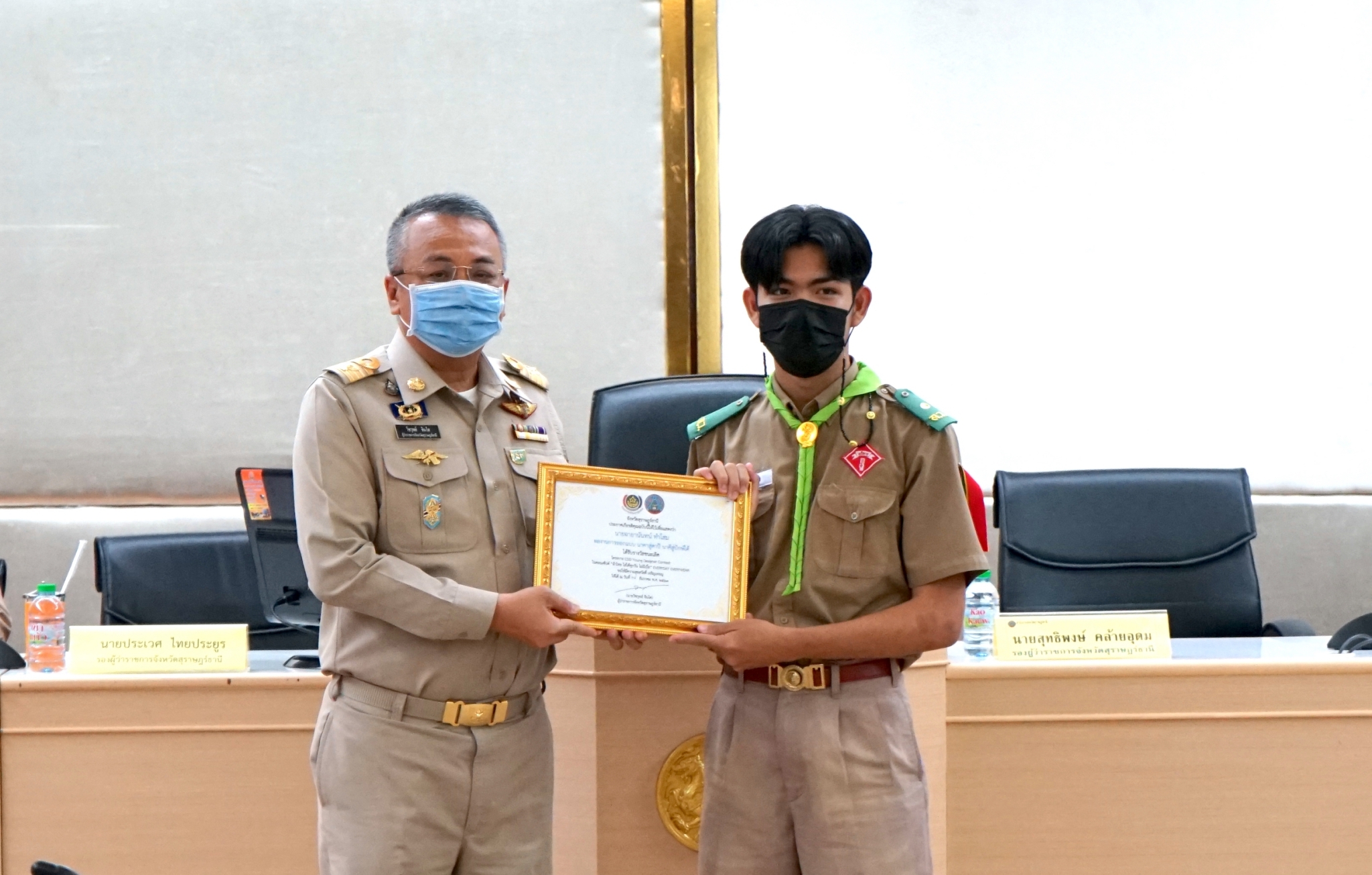 วันที่ 28 ธันวาคม 2563 เวลา 09.00 น. นายวิชวุทย์ จินโต ผู้ว่าราชการจังหวัดสุราษฎร์ธานี เป็นประธานมอบประกาศเกียรติคุณ แก่ผู้ชนะการประกวด CDD Young Designer Contest จังหวัดสุราษฎร์ธานี โดยนายไพศิษฏ์ อินทรโยธา รักษาราชการแทนพัฒนาการจังหวัดสุราษฎร์ธานี กล่าวรายงานและชี้แจงรายละเอียดโครงการ พร้อมเบิกตัวผู้ผ่านการคัดเลือกจำนวน 6 ราย เข้ารับประกาศเกียรติคุณ ณ ห้องประชุมเมืองคนดี ชั้น 5 ศาลากลางจังหวัด (หลังใหม่) อำเภอเมืองสุราษฎร์ธานี จังหวัดสุราษฎร์ธานี
