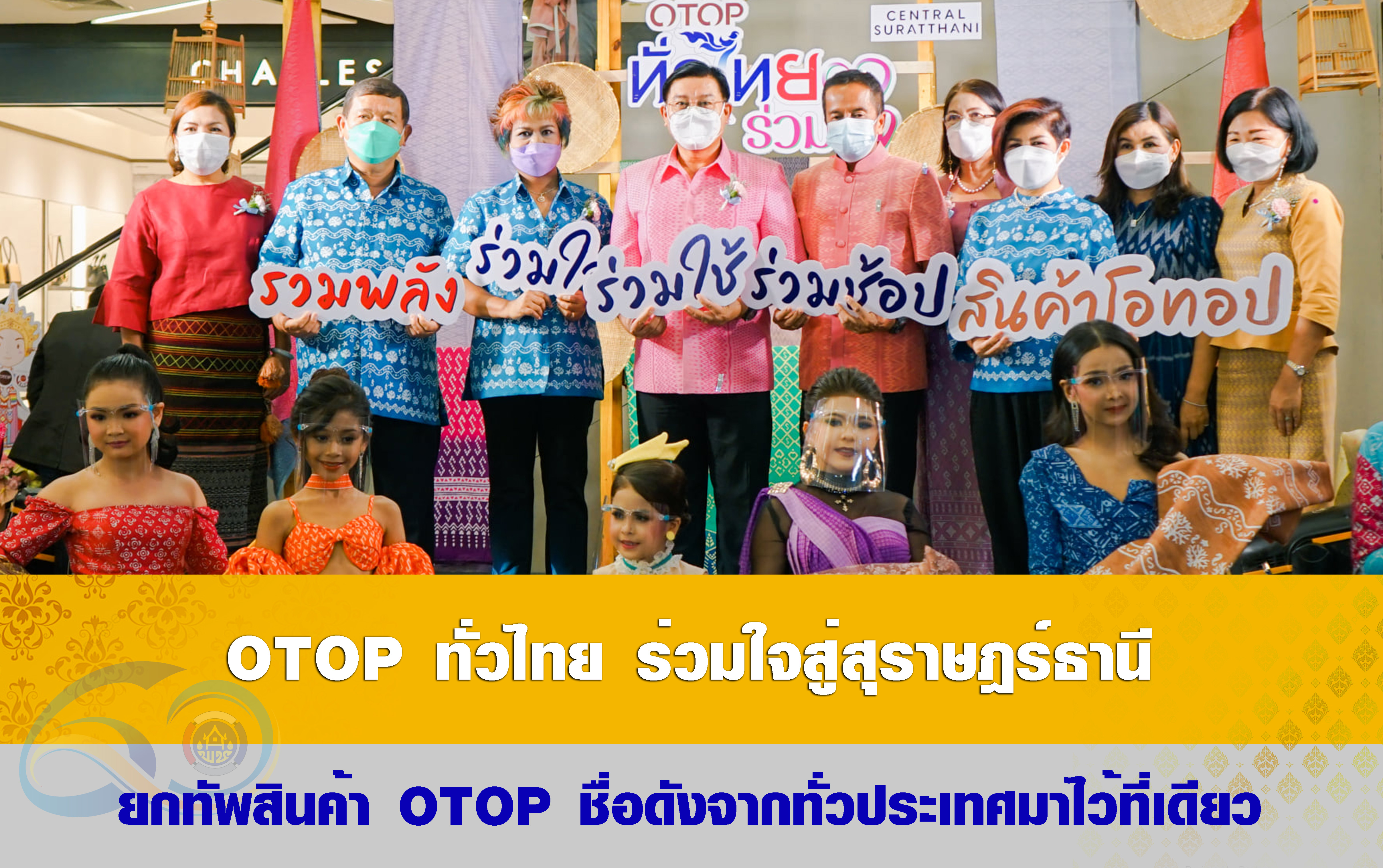 นายศักดาพร รัตนสุภา รองผู้ว่าราชการจังหวัดสุราษฎร์ธานี เป็นประธานในพิธีเปิดงาน “OTOP ทั่วไทย ร่วมใจสู่สุราษฎร์ธานี” ณ ลานโปรโมชั่น ชั้น 1 ศูนย์การค้าเซ็นทรัลพลาซ่าสุราษฎร์ธานี พร้อมด้วย นายกรองศักดิ์ โอยสวัสดิ์ พัฒนาการจังหวัดสุราษฎร์ธานี / หัวหน้าส่วนราชการจังหวัดสุราษฎร์ธานี / ผู้อำนวยการกลุ่มงานสำนักงานพัฒนาชุมชนจังหวัดสุราษฎร์ธานี / คณะกรรมการเครือข่าย OTOP ภาคใต้ / คณะกรรมการเครือข่าย OTOP จังหวัดสุราษฎร์ธานี / OTOP Trader จังหวัดสุราษฎร์ธานี ผู้ผลิต ผู้ประกอบการ OTOP และ แขกที่มาร่วมงานในครั้งนี้