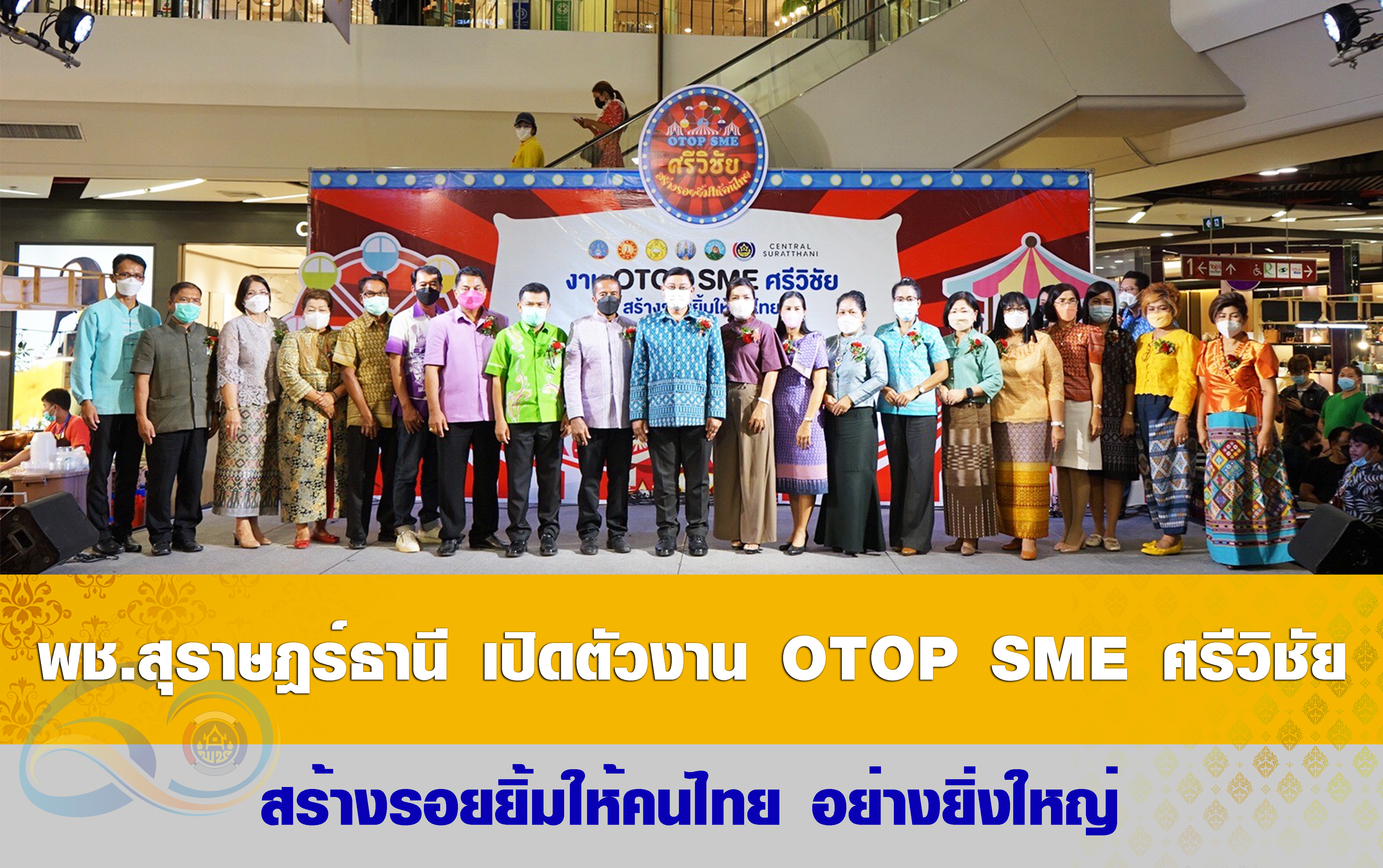 งาน OTOP SME ศรีวิชัย สร้างรอยยิ้มให้คนไทย จัดขึ้น ตั้งแต่วันที่ 17-23 พฤษภาคม 2565 เวลา 10.00-21.00 น. ณ ลานโปรโมชั่น ชั้น 1 ศูนย์การค้าเซ็นทรัลพลาซ่า สุราษฎร์ธานี