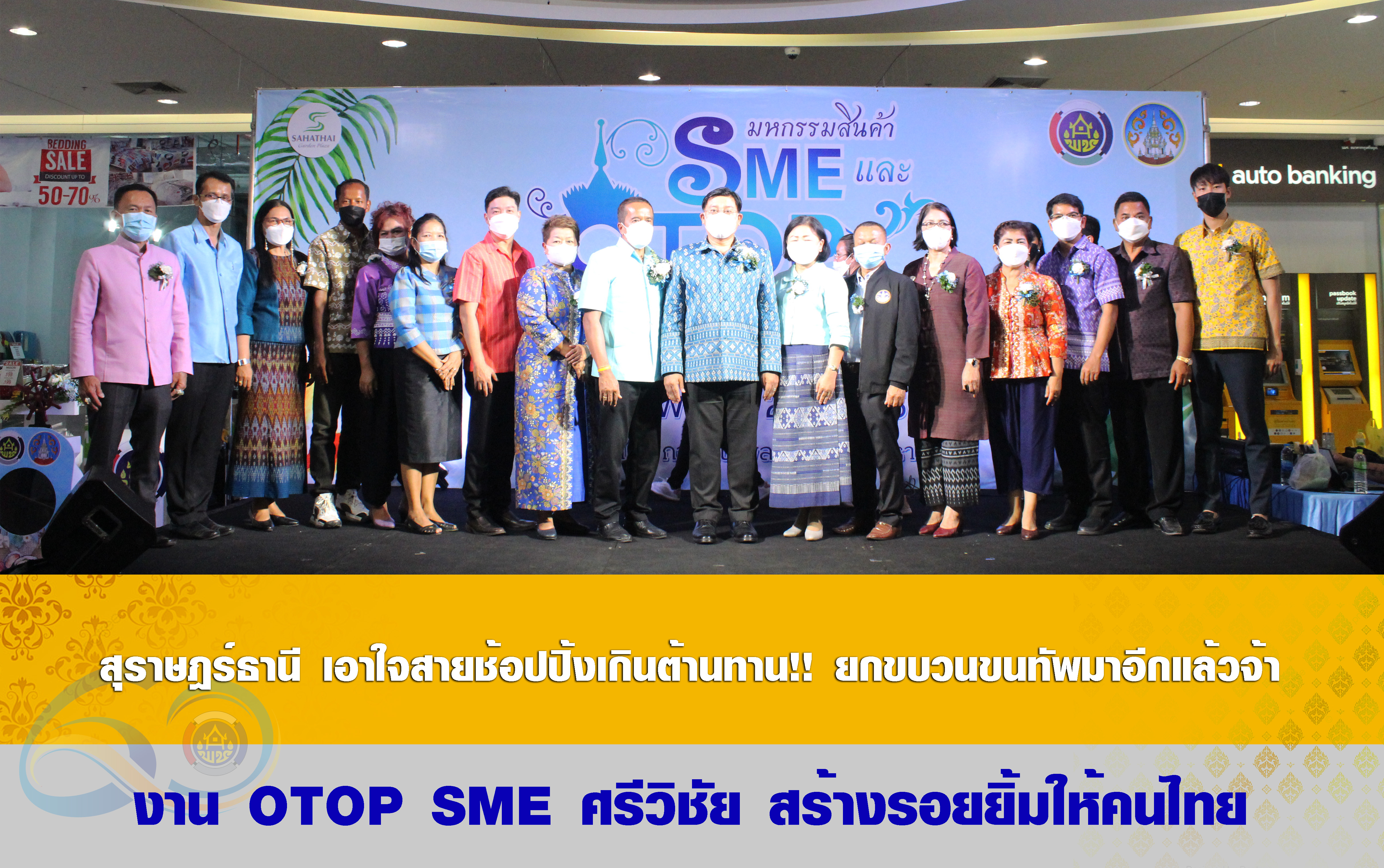 นายศักดาพร รัตนสุภา รองผู้ว่าราชการจังหวัดสุราษฎร์ธานี เป็นประธานพิธีเปิดงาน “OTOP SME ศรีวิชัย สร้างรอยยิ้มให้คนไทย” ณ ลานโปรโมชั่น ชั้น 1 ศูนย์การค้าสหไทยการ์เด้น พลาซ่า สุราษฎร์ธานี