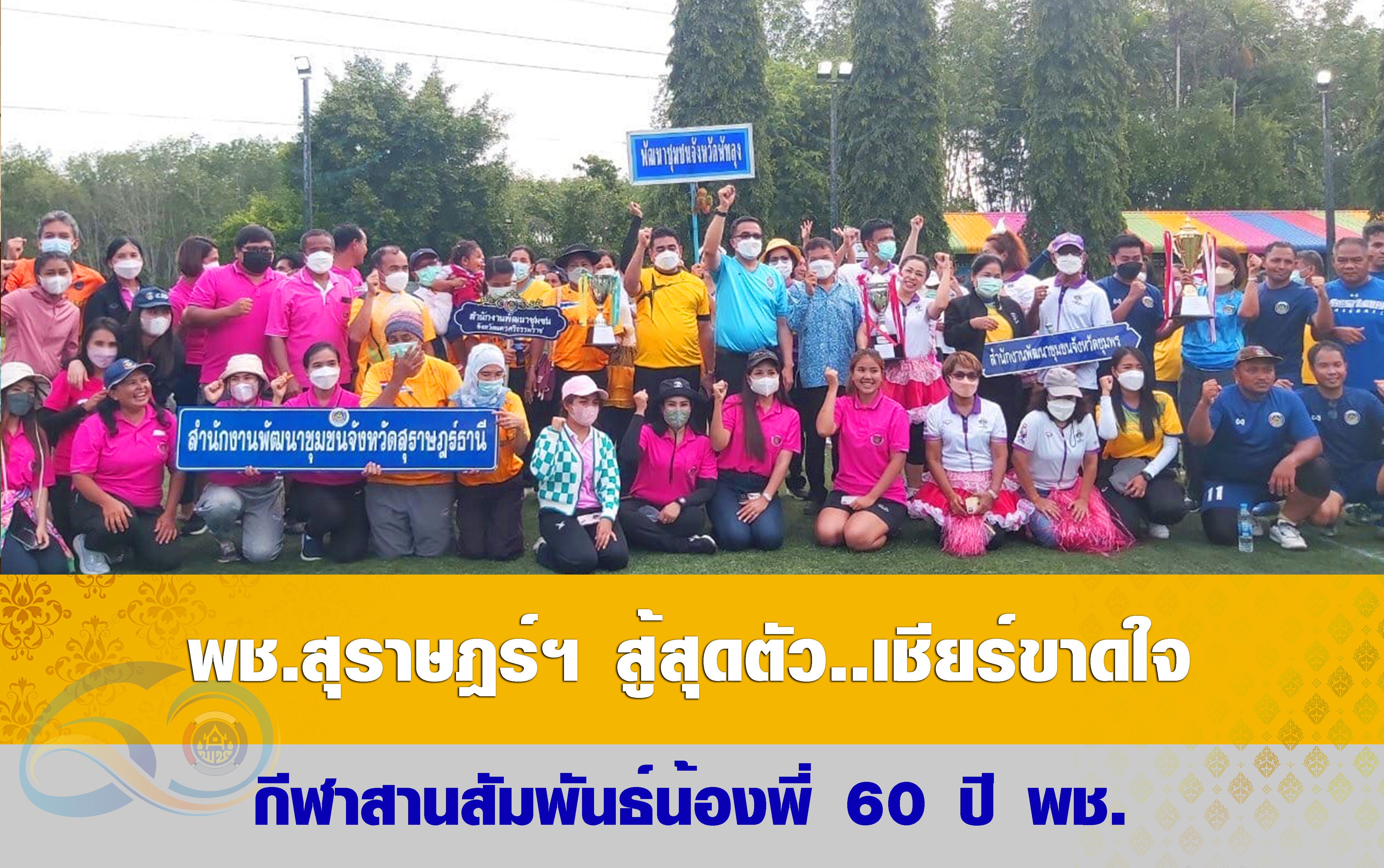 โดยมี พัฒนาการจังหวัด ผู้อำนวยการกลุ่มงาน และเจ้าหน้าที่พัฒนาชุมชนจากจังหวัด สุราษฎร์ธานี นครศรีธรรมราช พัทลุง สงขลา และชุมพร ร่วมกิจกรรมการแข่งกันสานสัมพันธ์น้องพี่ 60 ปี พช. ระดับเขตตรวจราชการ การแข่งขันกีฬาประกอบไปด้วย การแข่งขันเปตอง กีฬาแชร์บอล และฟุตบอล