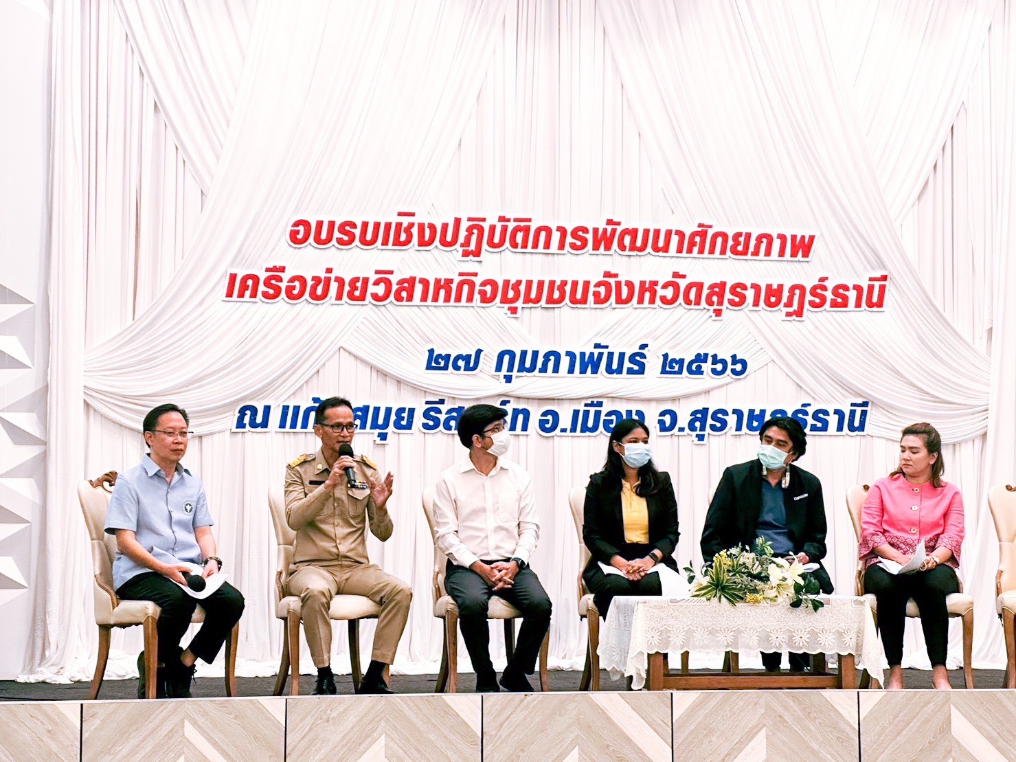 นายวิชวุทย์ จินโต ผู้ว่าราชการจังหวัดสุราษฎร์ธานี มอบหมาย นายชูศักดิ์ รู้ยิ่ง รองผู้ว่าราชการจังหวัดสุราษฎร์ธานี เป็นประธานในพิธีเปิดการอบรมเชิงปฏิบัติการพัฒนาศักยภาพเครือข่ายวิสาหกิจชุมชนผลิตแปรรูปผลิตภัณฑ์สุขภาพชุมชนจังหวัดสุราษฎร์ธานี ณ โรงแรมแก้วสมุย รีสอร์ท อำเภอเมืองฯ จังหวัดสุราษฎร์ธานี