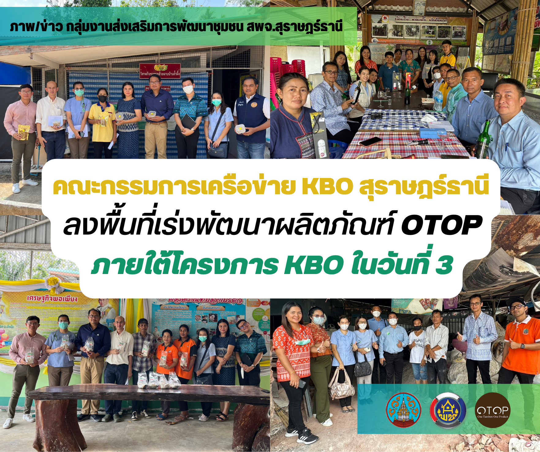 คณะกรรมการเครือข่าย KBO สุราษฎร์ธานี ลงพื้นที่เร่งพัฒนาผลิตภัณฑ์ OTOP ภายใต้โครงการ KBO ในวันที่ 3