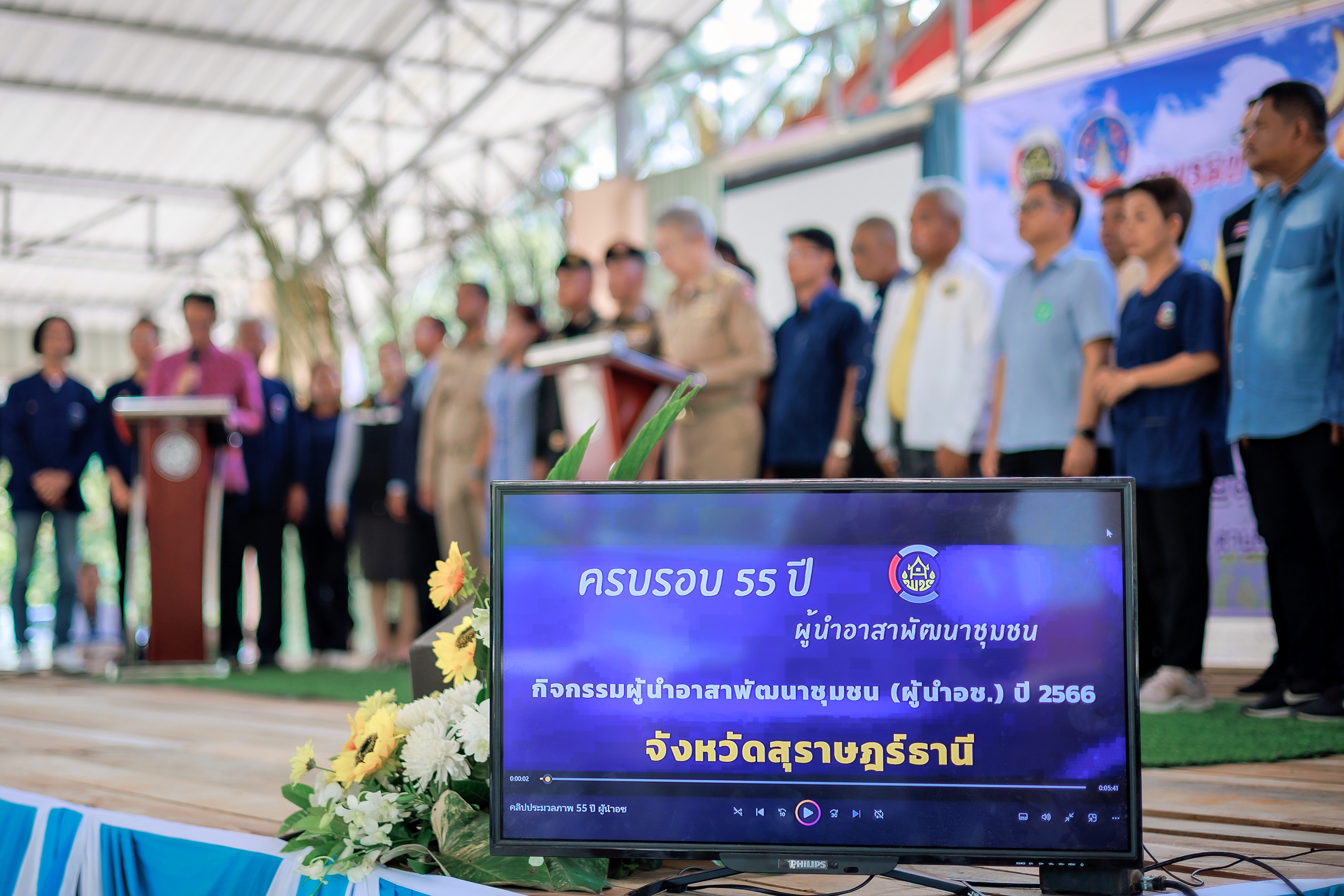 ชื่นมื่นด้วยรอยยิ้มและความสุข จังหวัดสุราษฎร์ธานีจับมือชมรมอาสาพัฒนาชุมชนและภาคีเครือข่ายการพัฒนาจัดกิจกรรมครบรอบ 55 ปี โครงการพัฒนาผู้นำอาสาพัฒนาชุมชน
