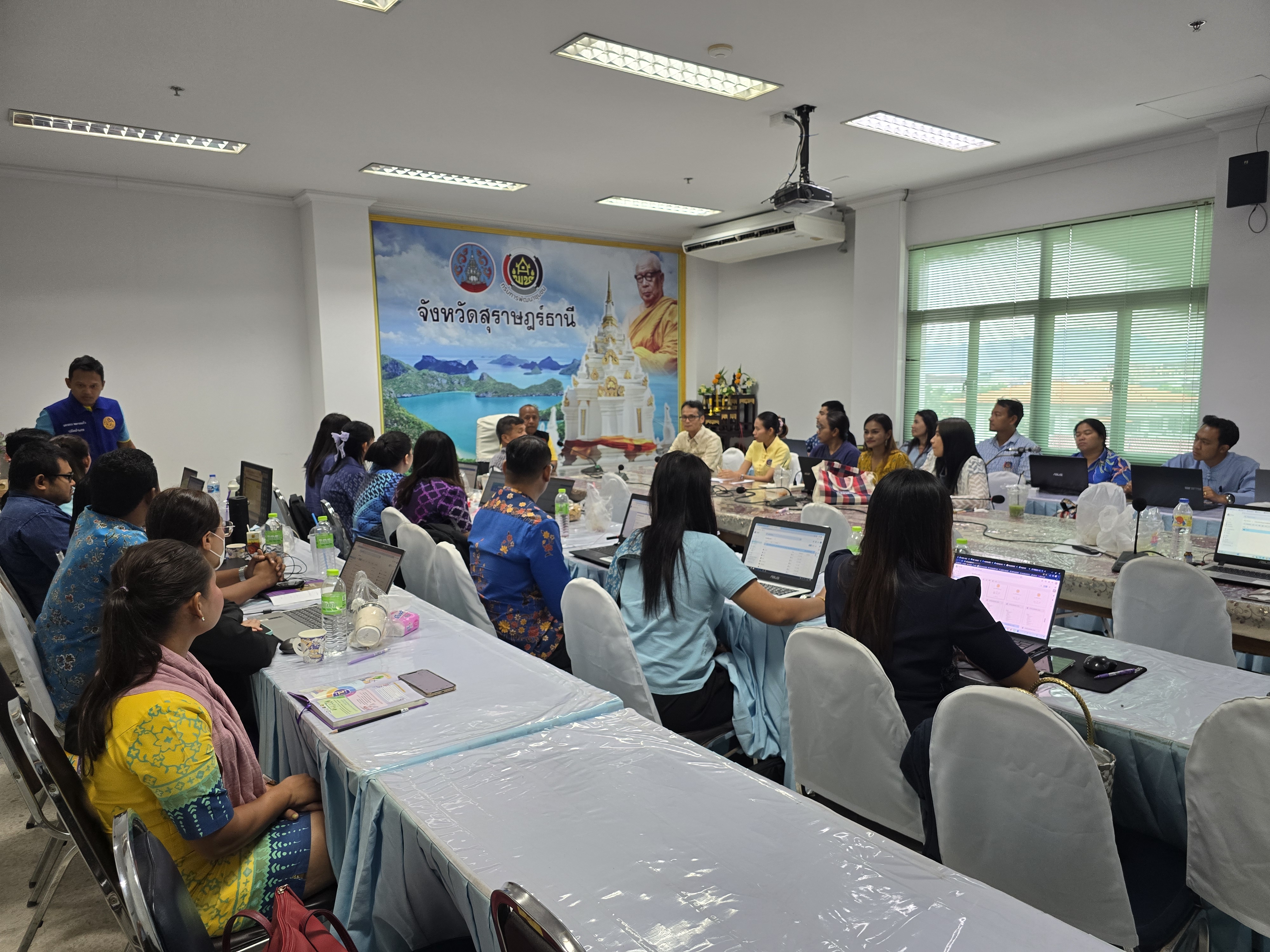<span;>สำนักงานพัฒนาชุมชนจังหวัดสุราษฎร์ธานี จัดประชุมเชิงปฏิบัติการพัฒนาศักยภาพบุคลากรด้านทักษะดิจิทัลและการผลิตสื่อประชาสัมพันธ์ รุ่นที่ 1 วันที่ 2 โดย<span;>นายสุคนธ์ หนูภักดี รองผู้ว่าราชการจังหวัดสุราษฎร์ธานี<span;> เข้าพบปะ และให้กำลังใจผู้เข้าร่วมประชุม ณ ห้องประชุมสำนักงานพัฒนาชุมชนจังหวัดสุราษฎร์ธานี มีผู้เข้าร่วมรับการฝึกอบรม จำนวน 36 คน