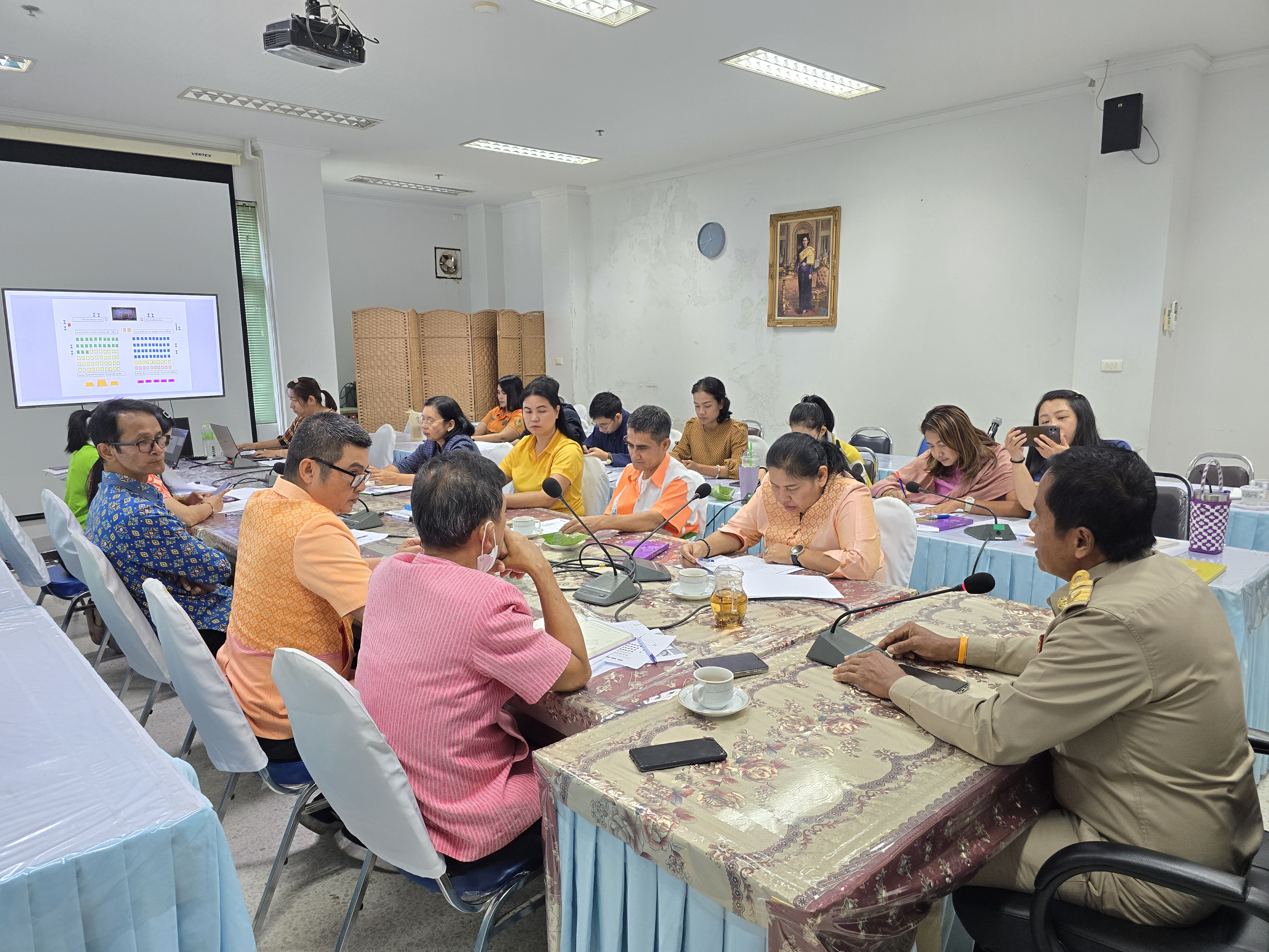 นายกรองศักดิ์ โอยสวัสดิ์ พัฒนาการจังหวัดสุราษฎร์ธานี พร้อมด้วย นายพิชัย มณีลาภ ผู้อำนวยการกลุ่มงานส่งเสริมการพัฒนาชุมชน นายธนิศร์ เลขานุกิจ ผู้อำนวยการกลุ่มงานสารสนเทศการพัฒนาชุมชน นายพิพัฒน์ กองพล ผู้อำนวยการกลุ่มงานยุทธศาสตร์การพัฒนาชุมชน นางสาวทวีวรรณ เกิดก่อ ผู้อำนวยการกลุ่มงานประสานและสนับสนุนการบริหารงานพัฒนาชุมชน พร้อมด้วย เจ้าหน้าที่พัฒนาชุมชน สำนักงานพัฒนาชุมชนจังหวัดสุราษฎร์ธานี ประชุมเตรียมความพร้อมพิธีมอบแบบลายผ้าพระราชทาน “ผ้าลายสิริวชิราภรณ์” ในวันศุกร์ที่ 29 มีนาคม 2567 ณ อาคารศูนย์กลางการประชุมสัมมนาภาคใต้ตอนบน ศาลากลางจังหวัดสุราษฎร์ธานี และงานทอดผ้าป่ากองทุนพัฒนาเด็กชนบท ในพระราชูปถัมภ์ สมเด็จพระเทพรัตนราชสุดาฯ สยามบรมราชกุมารี ในวันที่ 3 เมษายน 2567 ณ วัดกลางใหม่