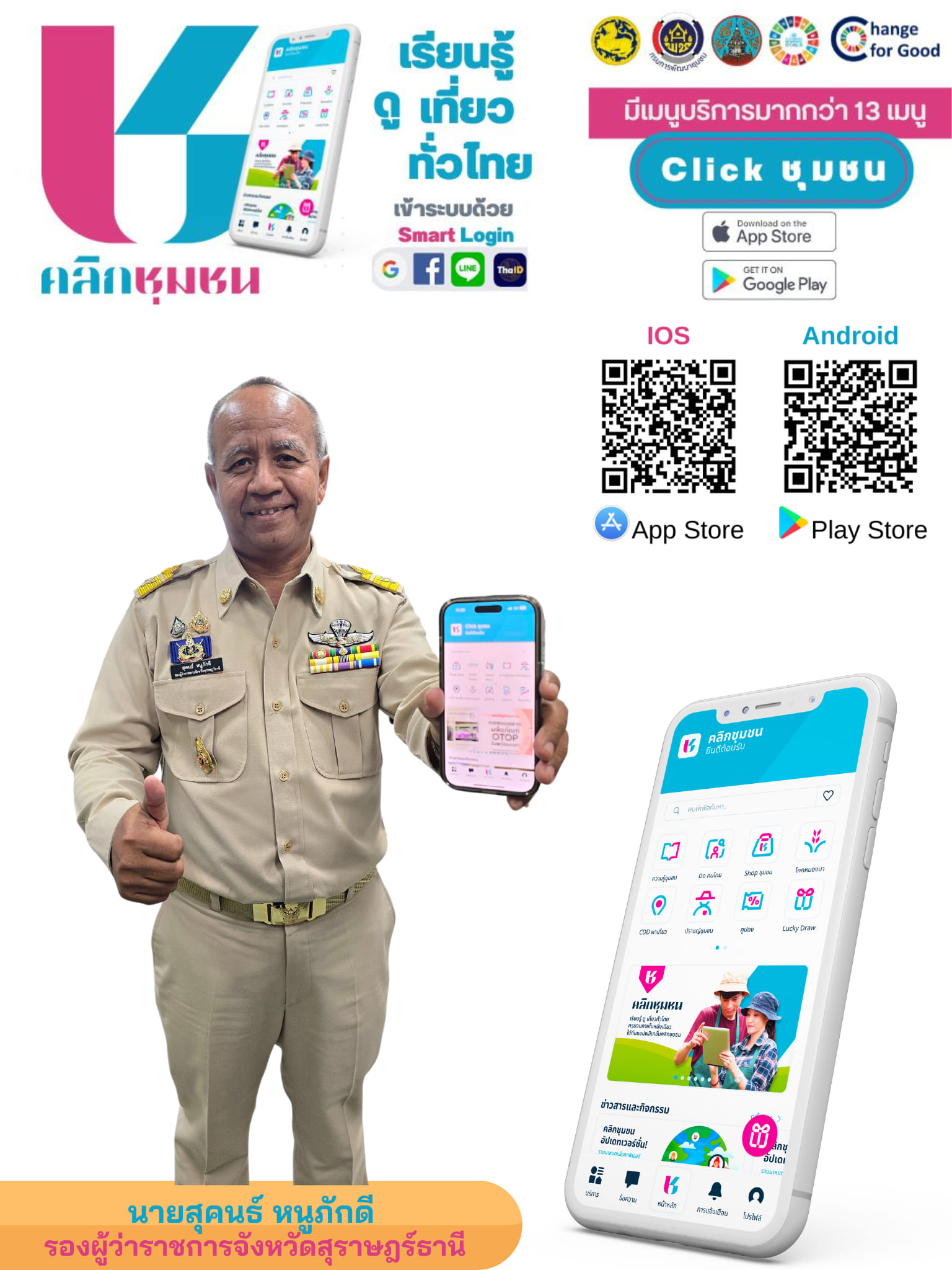 โดยทุกท่านสามารถดาวน์โหลดได้ผ่าน Play Store เพียงพิมพ์ค้นหาคำว่า “click ชุมชน” หรือ คลิก