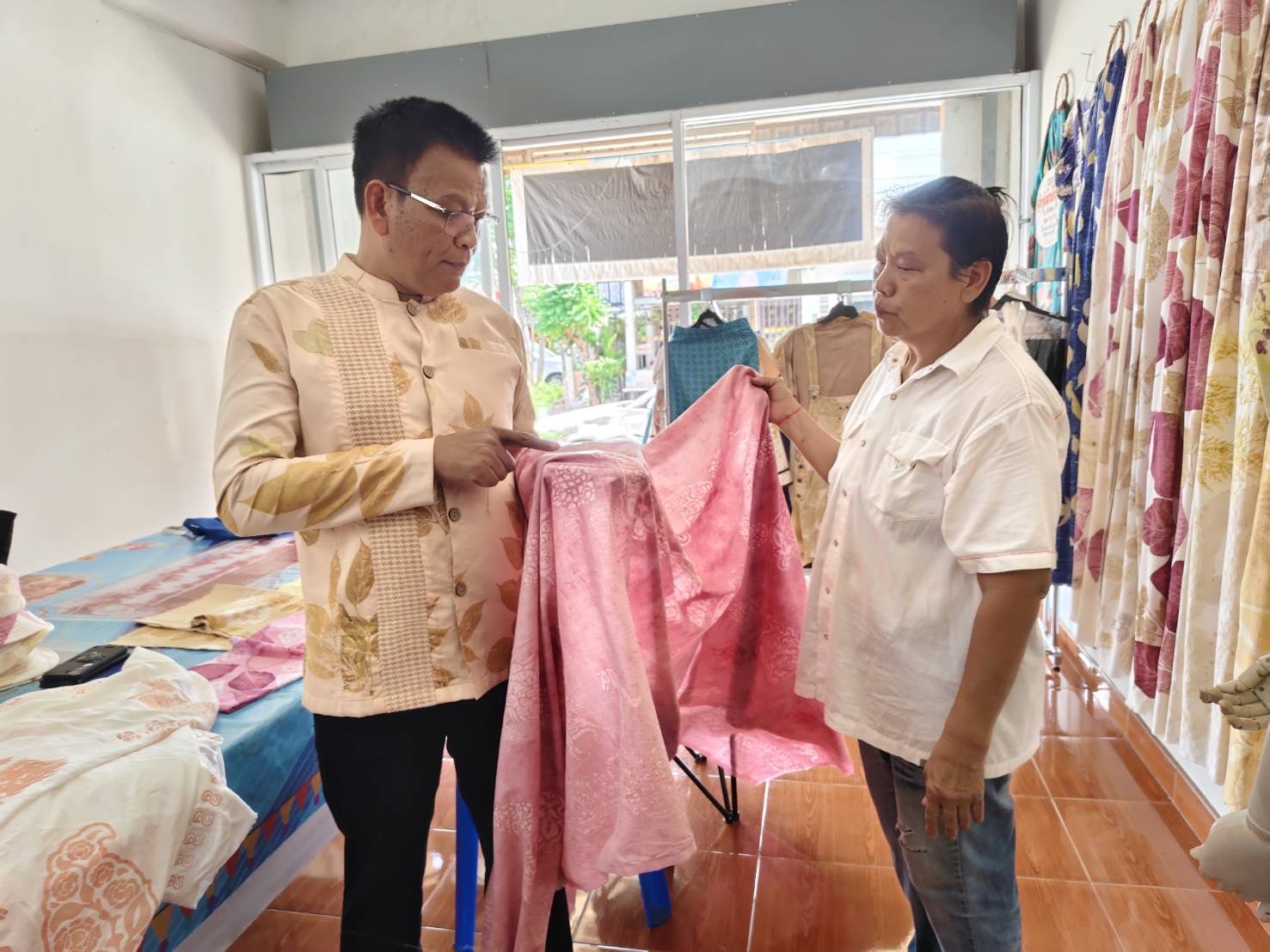 นายประโมทย์ ดำจวนลม พัฒนาการจังหวัดสุราษฎร์ธานี พร้อมด้วยนางปิยมาภรณ์ มณีอุปถัมภ์ นักวิชาการพัฒนาชุมชนชำนาญการ นักวิชาการพัฒนาชุมชนชำนาญการ ลงพื้นที่ติดตาม “Malinee89” เพื่อให้กำลังใจนางสาวมาลินี ฉิมเรือง และสมาชิกกลุ่ม Malinee89 ในการพัฒนาผลิตภัณฑ์ผ้าลวดลายใหม่ และเตรียมความพร้อมประกวด “ผ้าลายสิริราชพัสตราภรณ์”