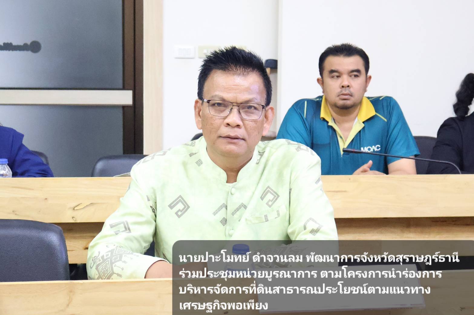 นายประโมทย์ ดำจวนลม พัฒนาการจังหวัดสุราษฎร์ธานี ร่วมประชุมหน่วยบูรณาการ ตามโครงการนำร่องการบริหารจัดการที่ดินสาธารณประโยชน์ตามแนวทางเศรษฐกิจพอเพียง ภายใต้แผนปฏิบัติราชการประจำปีงบประมาณ พ.ศ.2554 โดยมีนายบันดาล สถิรชวาล รองผู้ว่าราชการจังหวัดสุราษฎร์ธานี เป็นประธานในที่ประชุมฯ พร้อมด้วยหัวหน้าส่วนราชการบูรณาการตามโครงการฯ จำนวน 15 หน่วยงาน