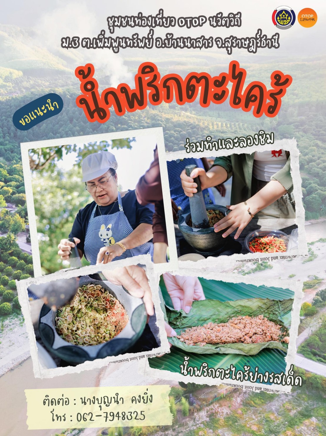 “สำนักงานพัฒนาชุมชนอำเภอบ้านนาสาร ขอแนะนำ น้ำพริกตะไคร้ 1 ใน 10 เสน่ห์ของบ้านศิลาดิเรกสาร ตำบลเพิ่มพูนทรัพย์ อำเภอบ้านนาสาร จังหวัดสุราษฎร์ธานี”