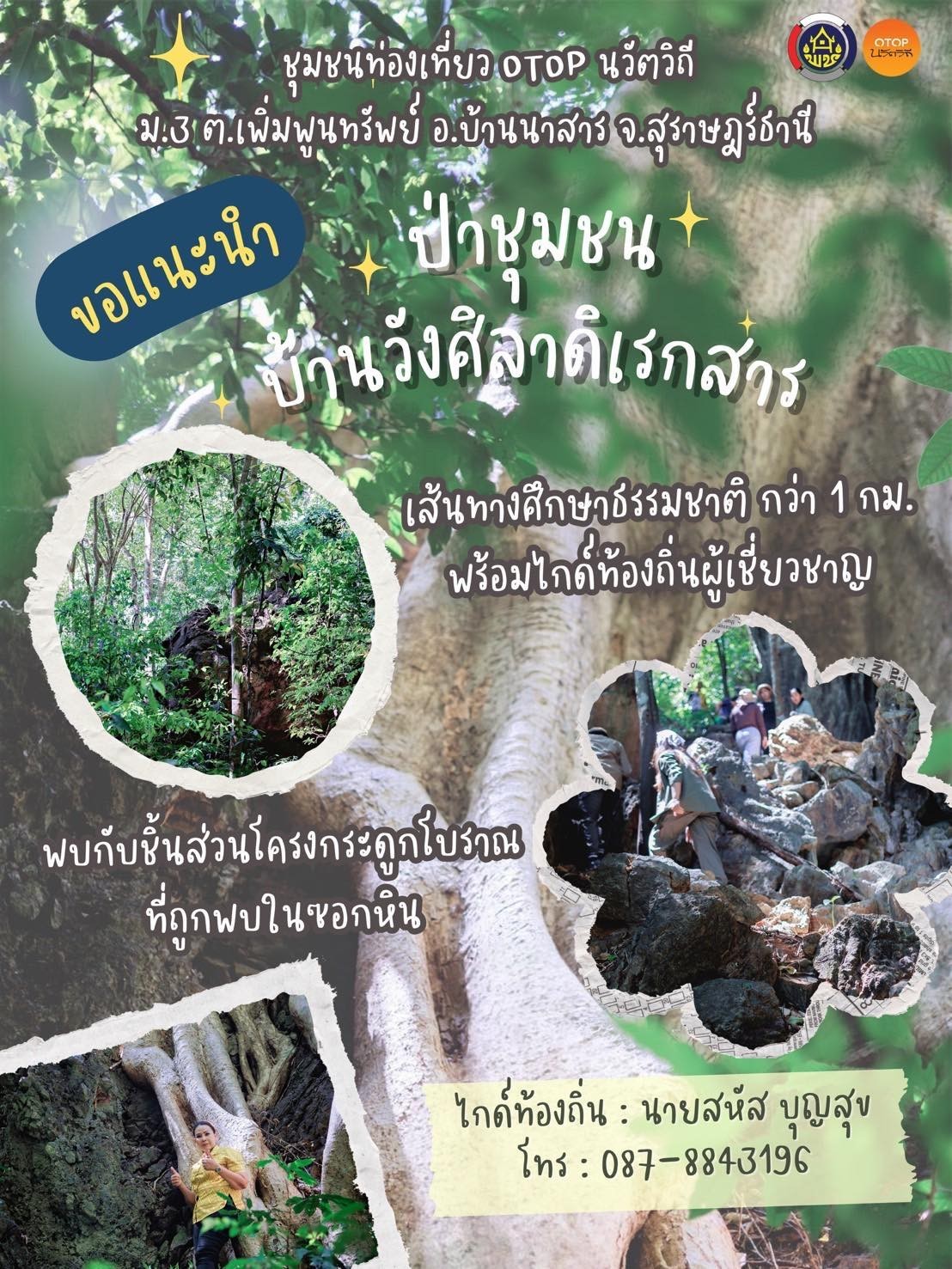 “สำนักงานพัฒนาชุมชนอำเภอบ้านนาสาร ขอแนะนำ เดินป่าชุมชนบ้านวังศิลาดิเรกสาร 1 ใน 10 เสน่ห์ของบ้านศิลาดิเรกสาร ตำบลเพิ่มพูนทรัพย์ อำเภอบ้านนาสาร จังหวัดสุราษฎร์ธานี”