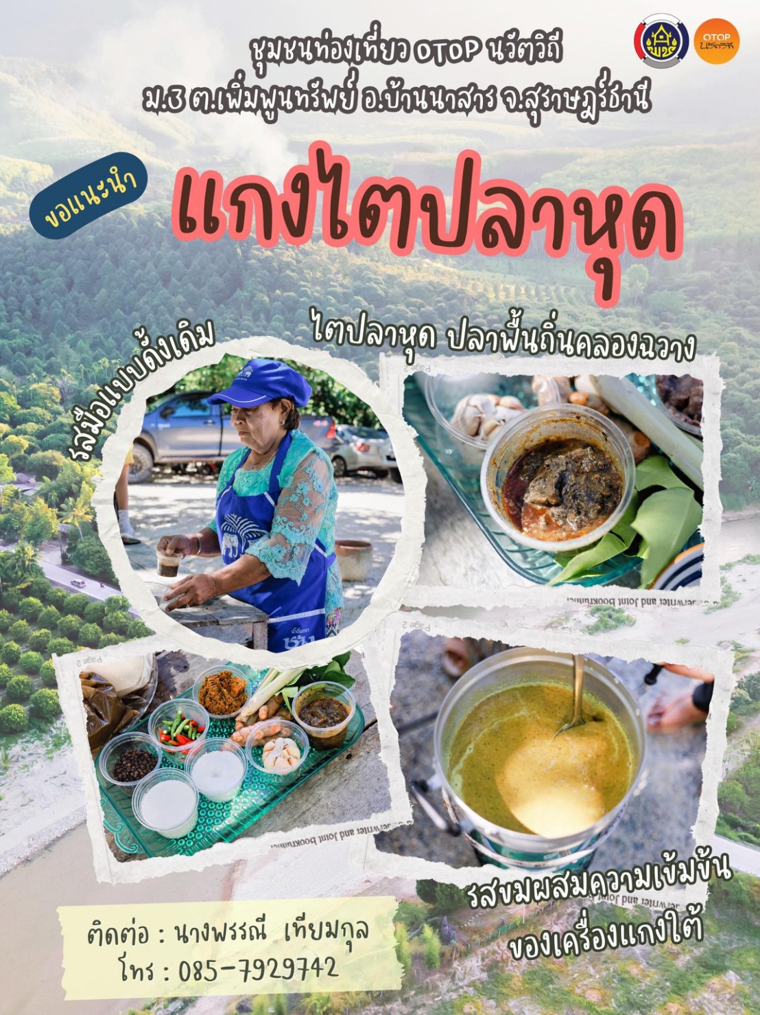 “สำนักงานพัฒนาชุมชนอำเภอบ้านนาสาร ขอแนะนำ แกงไตปลาหุด 1 ใน 10 เสน่ห์ของบ้านศิลาดิเรกสาร ตำบลเพิ่มพูนทรัพย์ อำเภอบ้านนาสาร จังหวัดสุราษฎร์ธานี”
