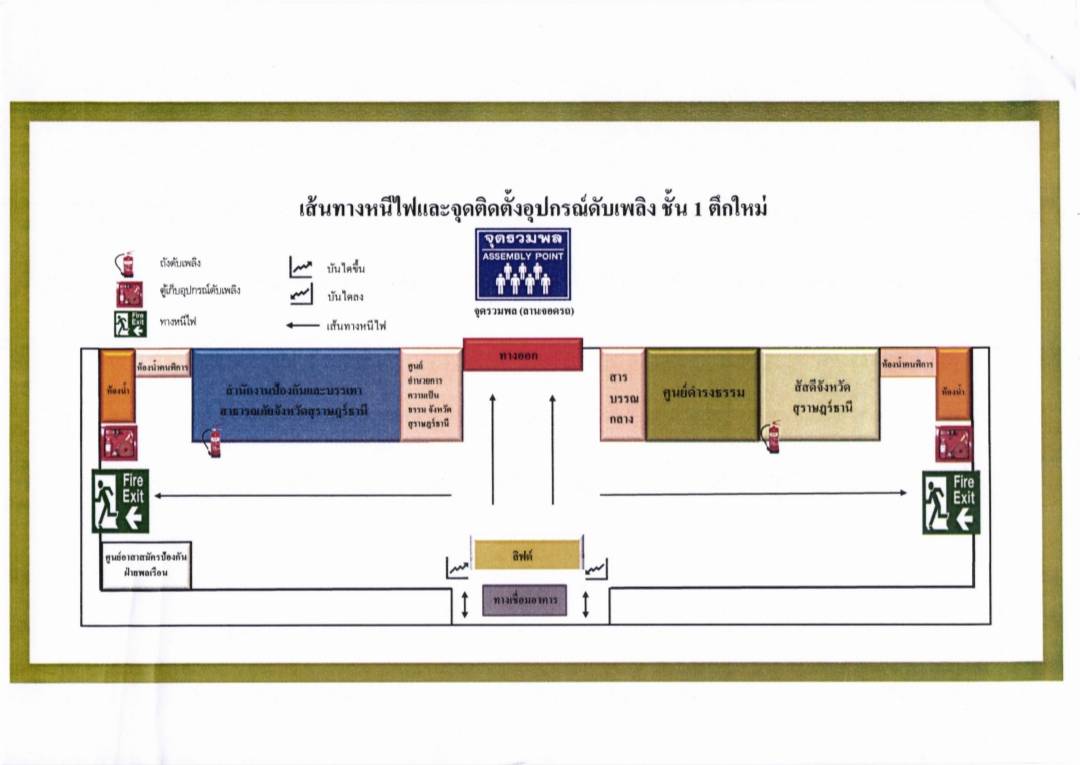 และหน่วยงานภาครัฐ โดยมีสำนักงานสวัสดิการและคุ้มครองแรงงานจังหวัดสุราษฎร์ธานี ในฐานะเลขานุการคณะทำงานฯ เป็นหน่วยอำนวยการฝึกข้อมดับเพลิงและอพยพหนีไฟ ณ ศูนย์ราชการจังหวัดสุราษฎร์ธานี ซึ่งมีเป้าหมายให้หน่วยงานในศูนย์ราชการจังหวัดสุราษฎร์ธานีเข้าร่วมการฝึกข้อมดับเพลิงและอพยพหนีไฟตามแผนที่กำหนดไว้ไม่น้อยกว่าร้อยละ ๕๐ ของเจ้าหน้าที่ในแต่ละหน่วยงาน