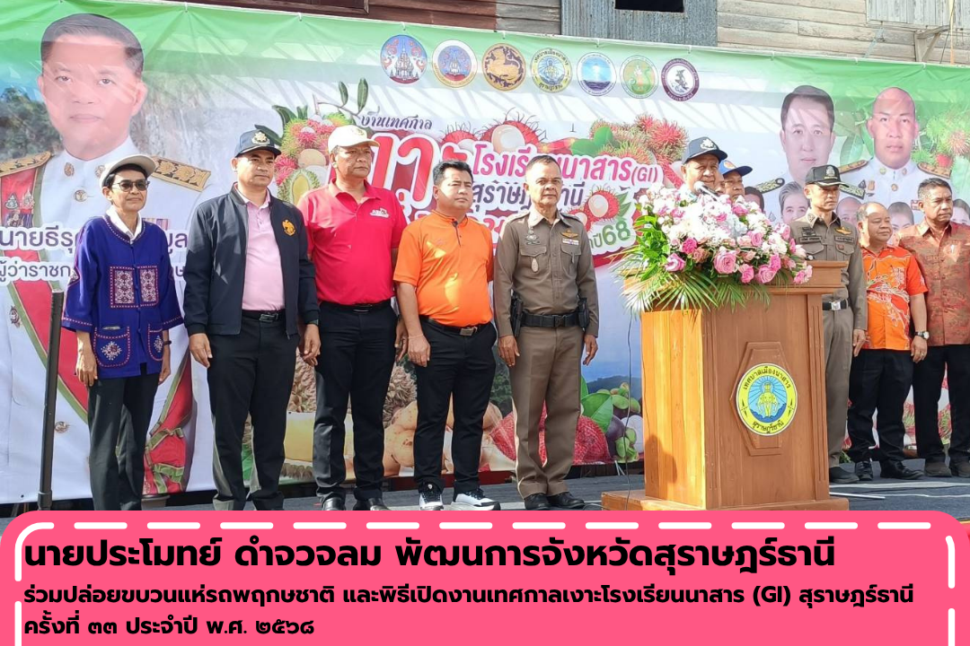 พช.สุราษฎร์ธานี ร่วมปล่อยขบวนแห่รถพฤกษชาติ และพิธีเปิดงานเทศกาลเงาะโรงเรียนนาสาร (GI) สุราษฎร์ธานี ครั้งที่ ๓๓ ประจำปี พ.ศ. ๒๕๖๘