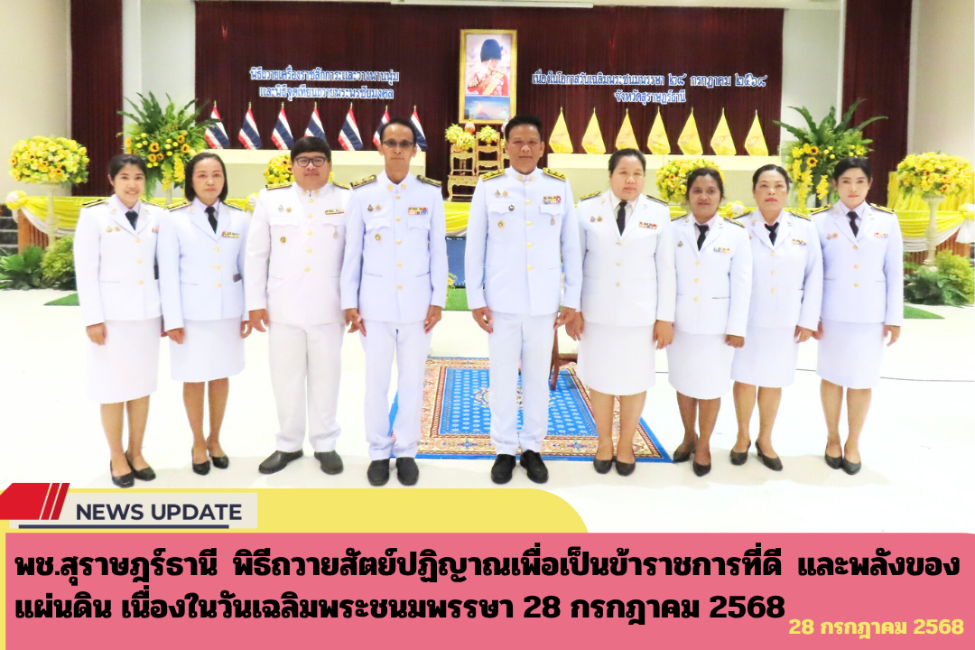 พช.สุราษฎร์ธานี พิธีถวายสัตย์ปฏิญาณเพื่อเป็นข้าราชการที่ดีและพลังของแผ่นดิน เนื่องในวันเฉลิมพระชนมพรรษา 28 กรกฎาคม 2568