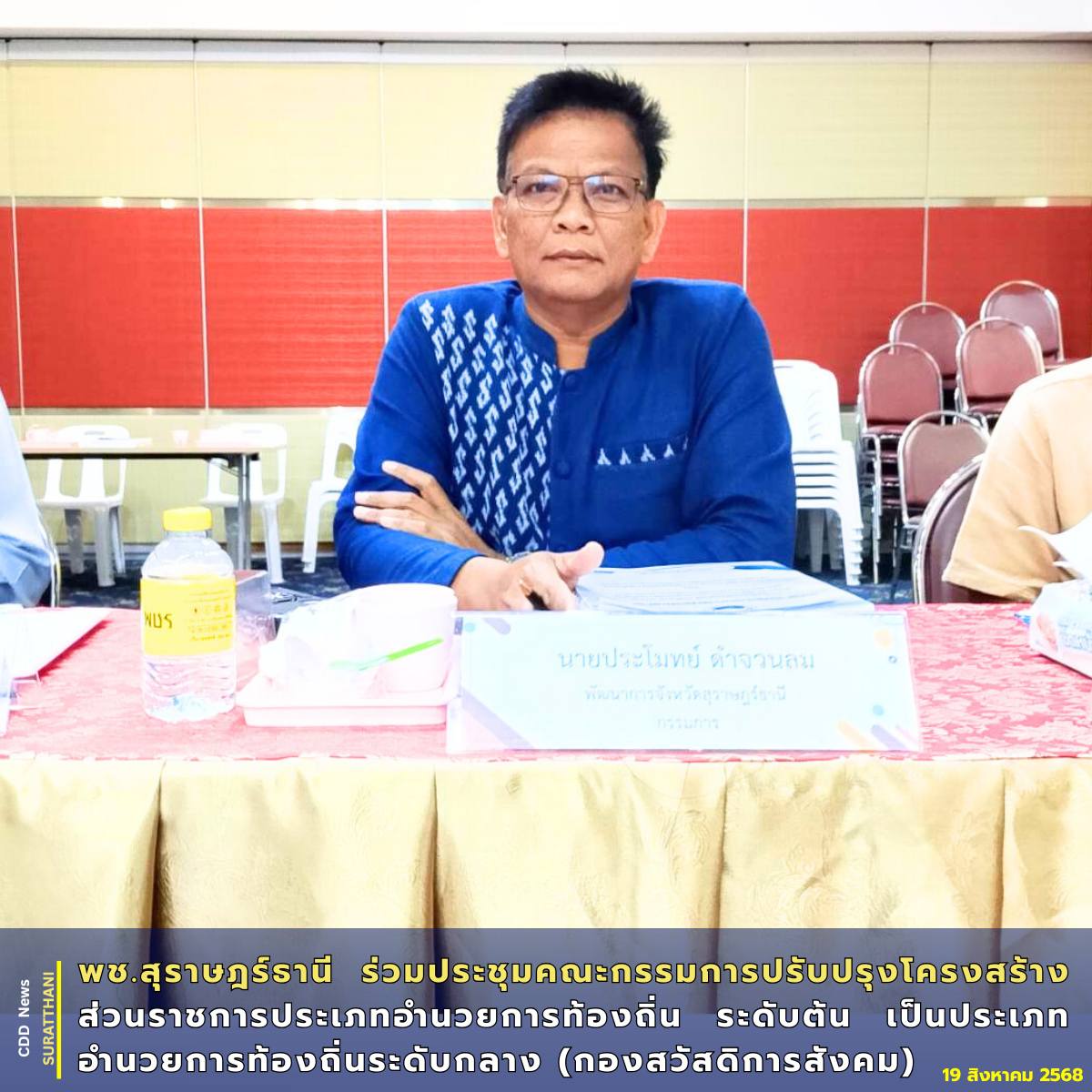 พช.สุราษฎร์ธานี ร่วมประชุมคณะกรรมการปรับปรุงโครงสร้างส่วนราชการประเภทอำนวยการท้องถิ่น ระดับต้นเป็นประเภทอำนวยการท้องถิ่นระดับกลาง (กองสวัสดิการสังคม)