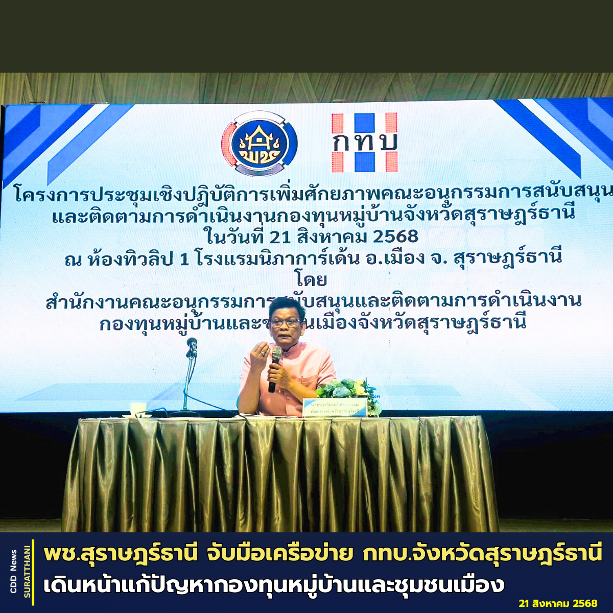 📢 พช.สุราษฎร์ธานี จับมือเครือข่าย กทบ.จังหวัดสุราษฎร์ธานี เดินหน้าแก้ปัญหากองทุนหมู่บ้านและชุมชนเมือง