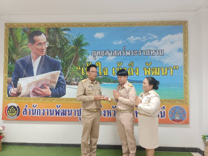 พัฒนาการจังหวัดสุราษฎร์ธานี พร้อมทีม พช.สุราษฎร์ธานี ต้อนรับพันจ่าอากาศเอก พนม ปัญญวงค์ และว่าที่ร้อยตรีหญิง วาสนา พรหมจรรย์ สู่ทีมพช.เมืองคนดี