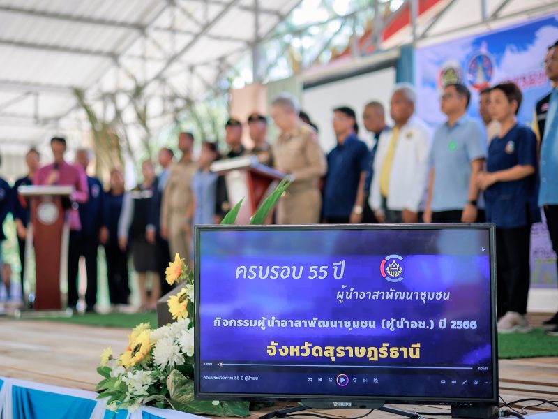 ชื่นมื่นด้วยรอยยิ้มและความสุข จังหวัดสุราษฎร์ธานีจับมือชมรมอาสาพัฒนาชุมชนและภาคีเครือข่ายการพัฒนาจัดกิจกรรมครบรอบ 55 ปี โครงการพัฒนาผู้นำอาสาพัฒนาชุมชน