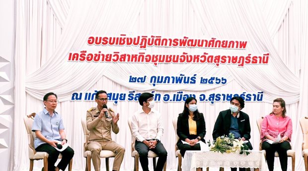 จังหวัดสุราษฎร์ธานีรวมพลังภาคีการพัฒนาจัด อบรมเชิงปฏิบัติการ ผลักดันวิสาหกิจชุมชนฯ และOTOP ก้าวสู่ “ครัวของโลก”