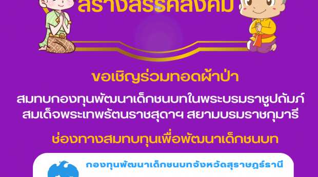 “สุราษฎร์ธานี เมืองคนดี” จัดพิธีมอบแบบลายผ้าพระราชทาน “ผ้าลายดอกรักราชกัญญา” สนองในพระมหากรุณาธิคุณ “เจ้าฟ้าสิริวัณณวรีฯ” เพื่อผลักดันการสร้างงาน สร้างรายได้ กระจายสู่ชุมชนอย่างยั่งยืน”