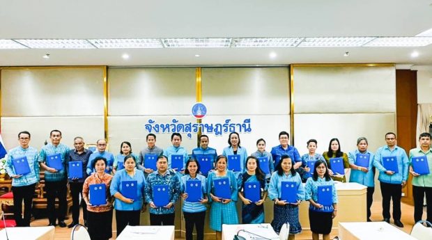พช.สุราษฎร์ จับมือ ปปส.ภาค 8 และเครือข่ายกองทุนแม่ฯ จังหวัดสุราษฎร์ธานี จัดพิธีมอบเงินพระราชทานขวัญถุงกองทุนแม่ของแผ่นดิน ปี 2565