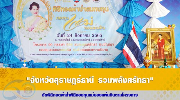 “จังหวัดสุราษฎร์ธานี รวมพลังศรัทธา” …จัดพิธีทอดผ้าป่าพิธีกองทุนแม่ของแผ่นดินตามโครงการ “๙๐ พรรษา ๙๙๙ สมทบทุนศรัทธา ทุนปัญญา กองทุนแม่ของแผ่นดิน ทุนตั้งต้นแห่งความดีงาม”