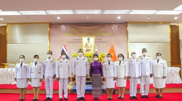 พช.สุราษฎร์ฯ ร่วมพิธีมอบผ้ายกราชวัตรโคม ลายผ้าอันเป็นอัตลักษณ์ประจำจังหวัดสุราษฎร์ธานี