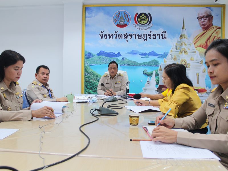 พช.สุราษฎร์ธานี รับฟัง ประชุมชี้แจงการขับเคลื่ิอนโครงการพัฒนาพื้นที่ต้นแบบการพัฒนาคุณภาพชีวิตตามหลักทฤษฏีใหม่ประยุกต์สู่ โคก หนอง นา โมเดลผ่านระบบวิดีทัศน์ทางไกล (Video Conference )