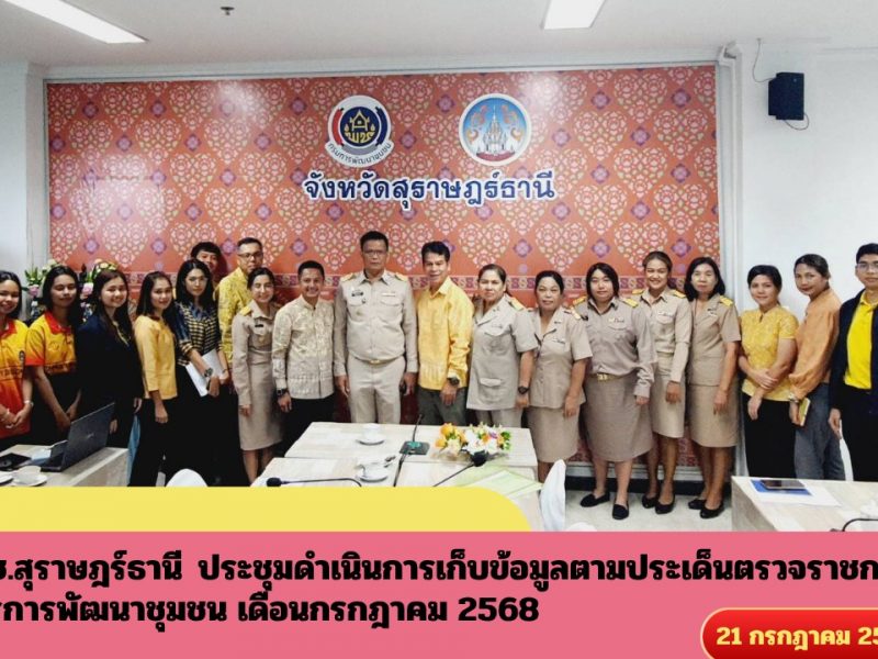 📣พช.สุราษฎร์ธานี ประชุมดำเนินการเก็บข้อมูลตามประเด็นตรวจราชการกรการพัฒนาชุมชน เดือนกรกฎาคม 2568 📣