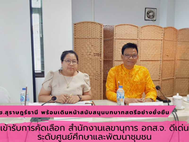 “พช.สุราษฎร์ธานี เข้ารับการคัดเลือก สำนักงานเลขานุการ อกส.จ. ดีเด่น’ ระดับศูนย์ศึกษาและพัฒนาชุมชน” พร้อมเดินหน้าสนับสนุนบทบาทสตรีอย่างยั่งยืน