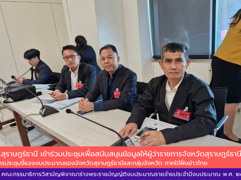 📣พช.สุราษฎร์ธานี เข้าร่วมประชุมเพื่อสนับสนุนข้อมูลให้ผู้ว่าราชการจังหวัดสุราษฎร์ธานี ในการประชุมชี้แจงงบประมาณของจังหวัดสุราษฎร์ธานีและกลุ่มจังหวัด ภาคใต้ฝั่งอ่าวไทย