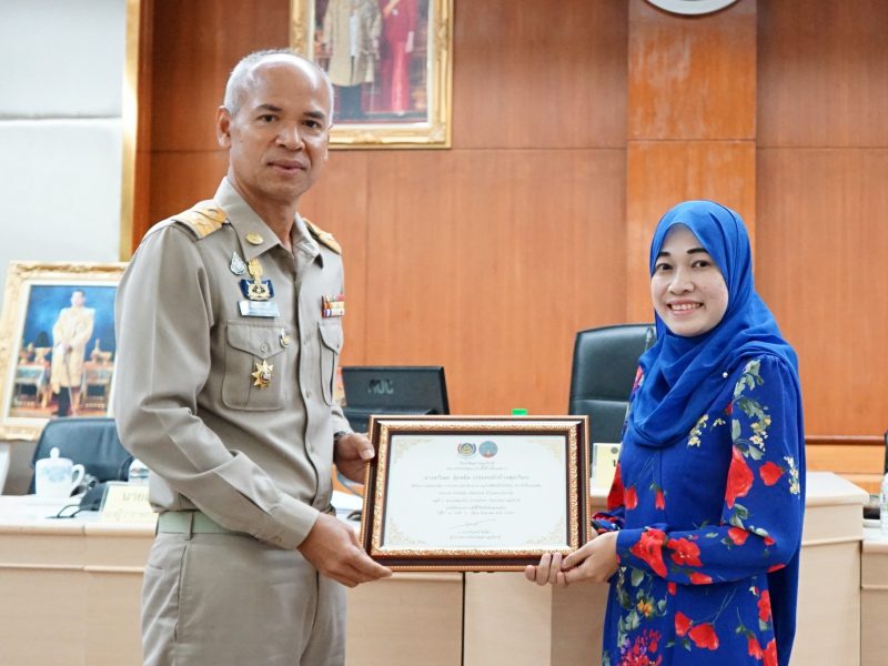 จังหวัดสุราษฎร์ธานี มอบประกาศเกียรติคุณแด่ผู้ชนะเลิศประเภทผ้า ตามโครงการประกวดผ้าสืบสาน อนุรักษ์ศิลป์ผ้าถิ่นไทย ดำรงไว้ในแผ่นดิน