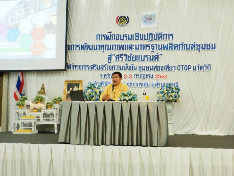 พัฒนาการจังหวัดสุราษฎร์ธานี มอบนโยบายโครงการพัฒนาคุณภาพและมาตรฐานผลิตภัณฑ์ชุมชน สู่ “ศรีวิชัยแบรนด์” ภายใต้โครงการเสริมสร้างความยั่งยืน ชุมชนท่องเที่ยว OTOP นวัตวิถี
