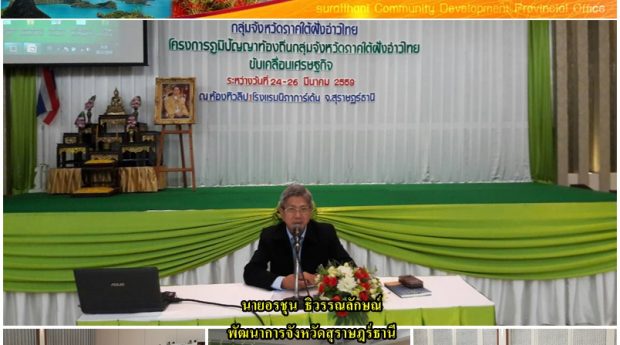 วันนี้ 25 มี.ค.59 การประชุมเชิงปฏิบัติการเพิ่มประสิทธิภาพคณะกรรมการเครือข่าย OTOP กลุ่มจังหวัดภาคใต้ฝั่งอ่าวไทย ภายใต้โครงการ”ภูมิปัญญาท้องถิ่นกลุ่มจังหวัดภาคใต้ฝั่งอ่าวไทยขับเคลื่อนเศรษฐกิจ”