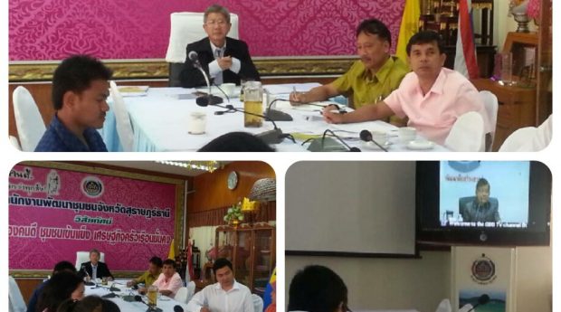 9 ก.พ.59 พัฒนาการจังหวัดสุราษฎร์ธานี พร้อมด้วย หน.กลุ่ม/หน.ฝ่าย และนักวิชาการพัฒนาชุมชน ร่วมรับฟังการประชุมกรมการพัฒนาชุมชน ผ่านระบบ VDO Conference
